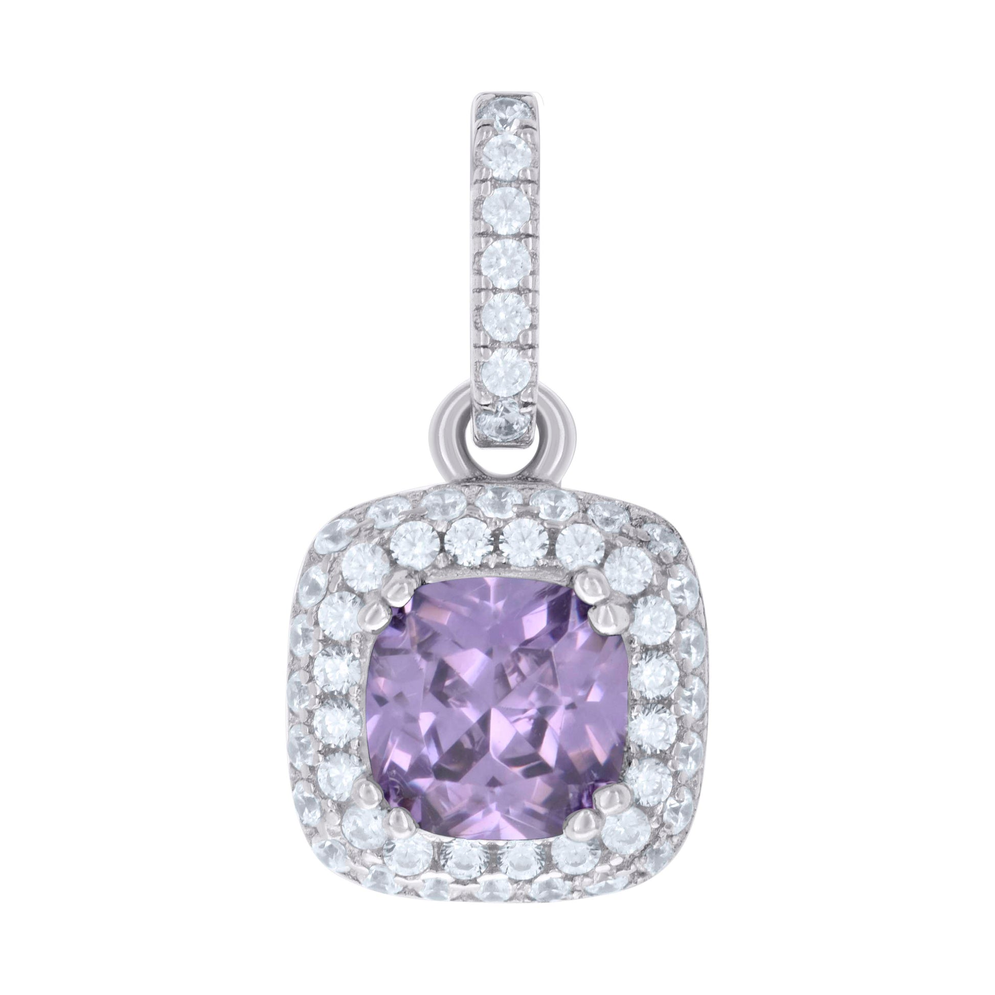 925 Sterling Silver Womens Purple Cubic Zirconia Fashion Square Charm Pendant