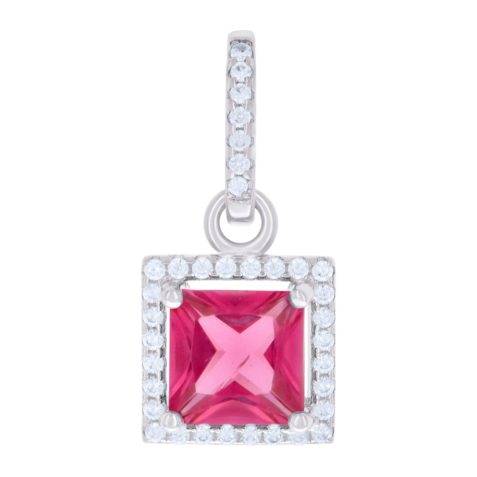 925 Sterling Silver Womens Red Cubic Zirconia Fashion Square Charm Pendant