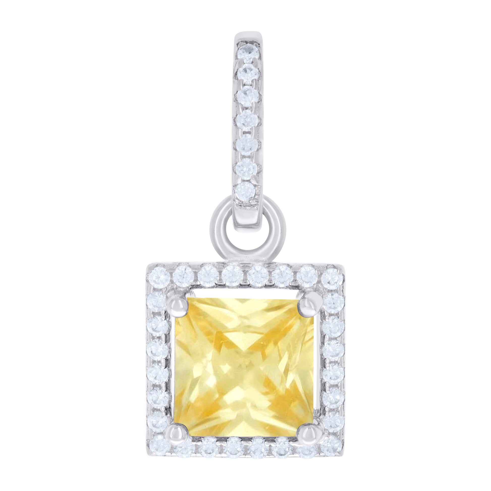 925 Sterling Silver Womens Yellow Cubic Zirconia Fashion Square Charm Pendant