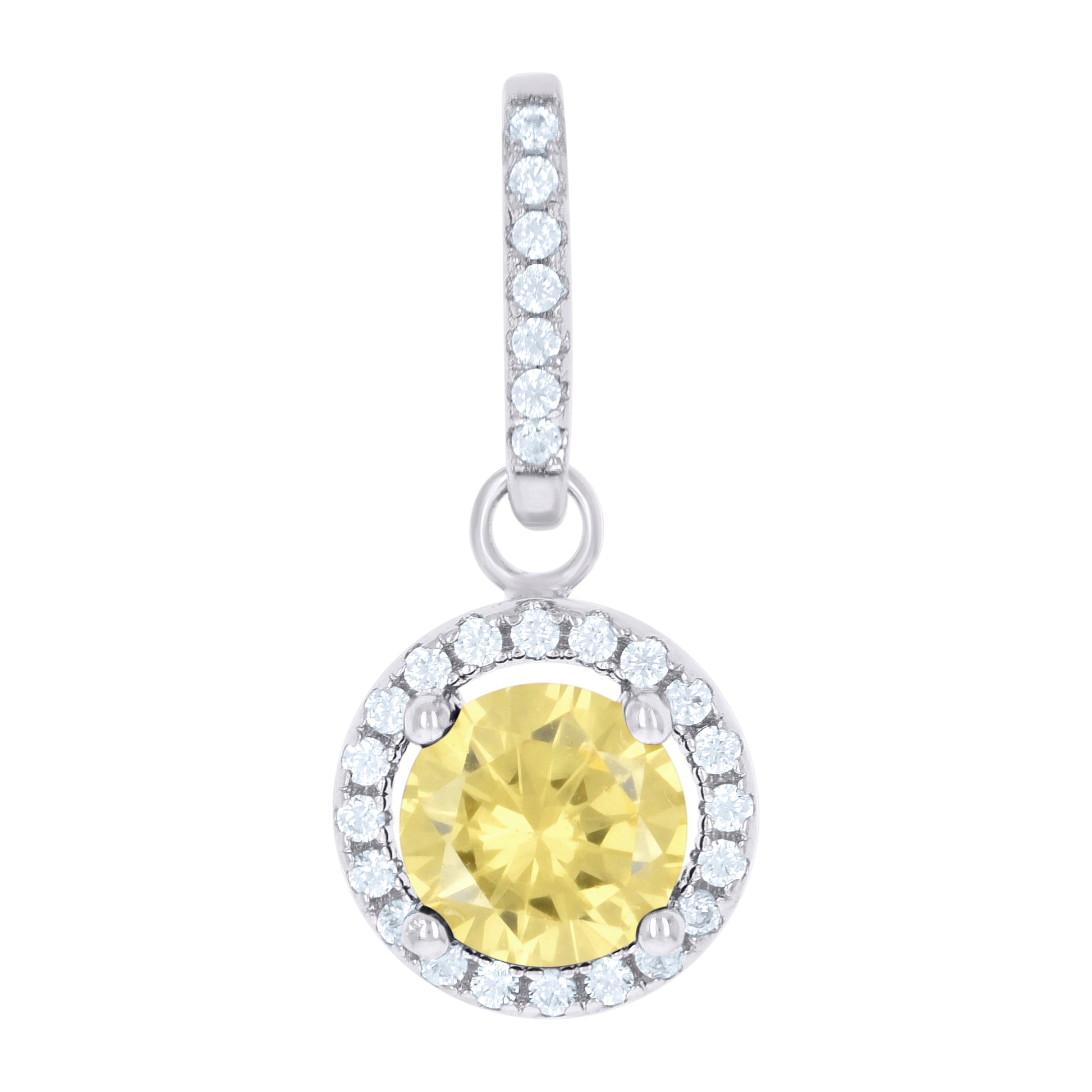 925 Sterling Silver Womens Yellow Cubic Zirconia Fashion Round Charm Pendant