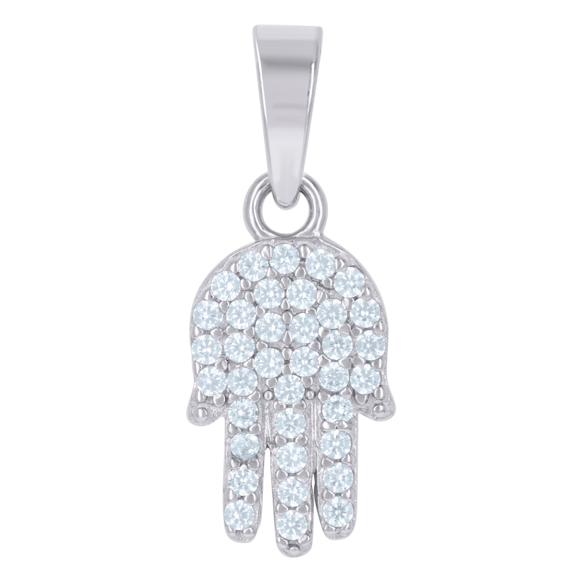 925 Sterling Silver Unisex Cubic Zirconia Religious Humsa Charm Pendant
