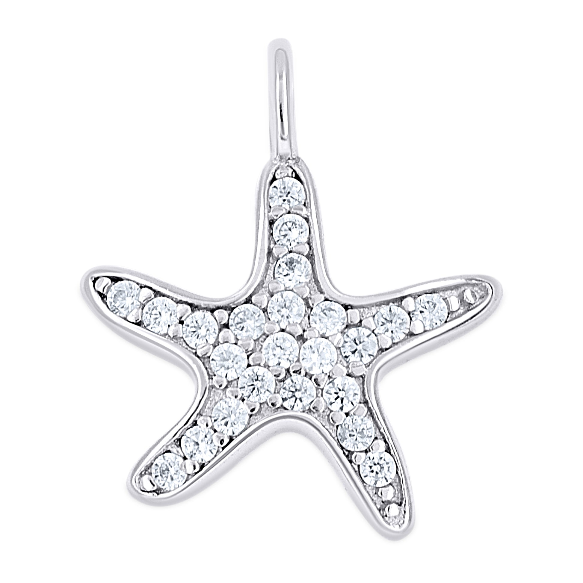 925 Sterling Silver Unisex Cubic Zirconia Star Fish Charm Pendant