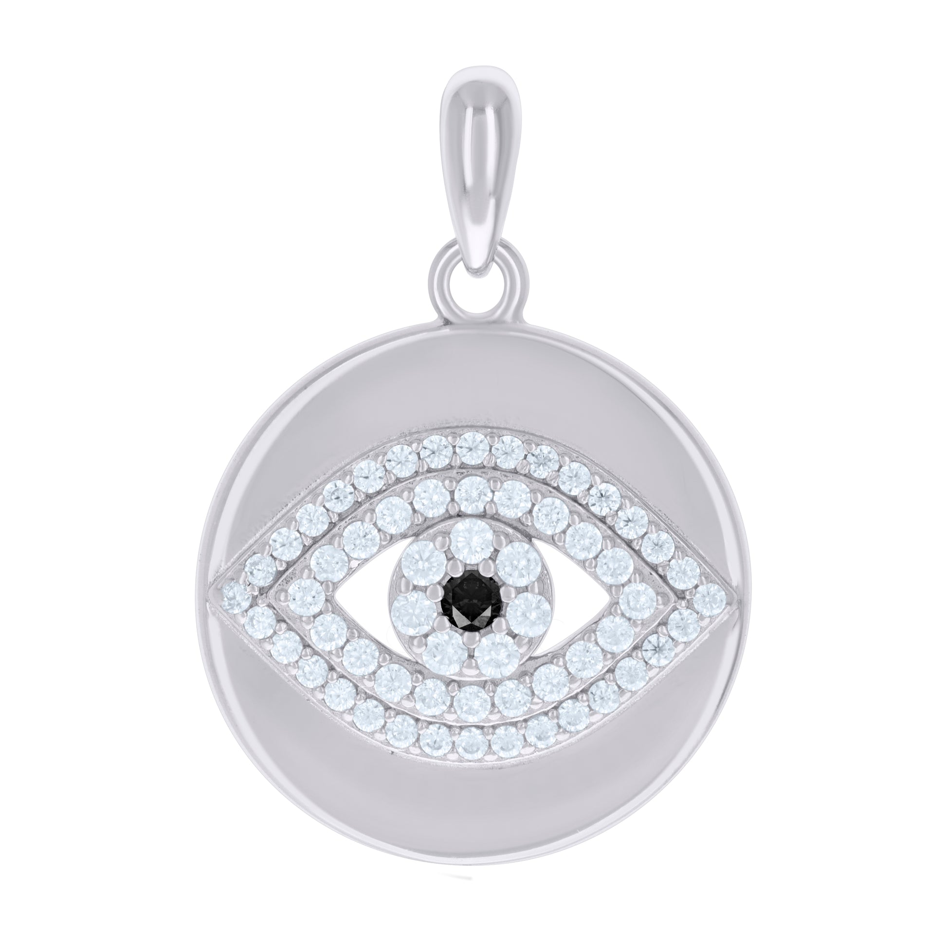 925 Sterling Silver Mens Black White Cubic-Zirconia Evil Eye Good Luck Charm Pendant