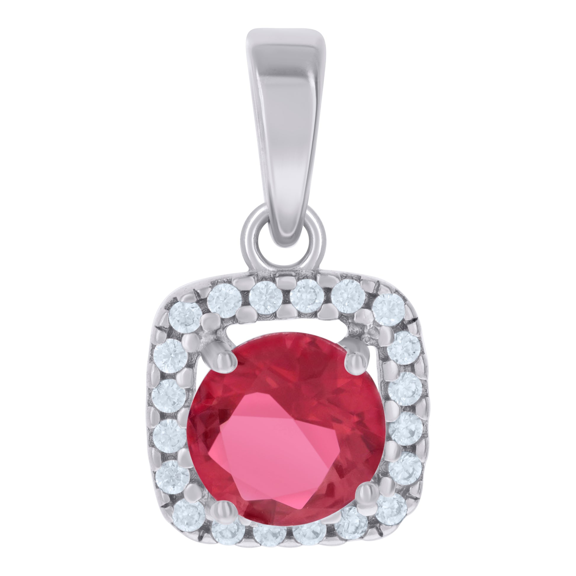 925 Sterling Silver Womens Red Cubic Zirconia Fashion Square Charm Pendant