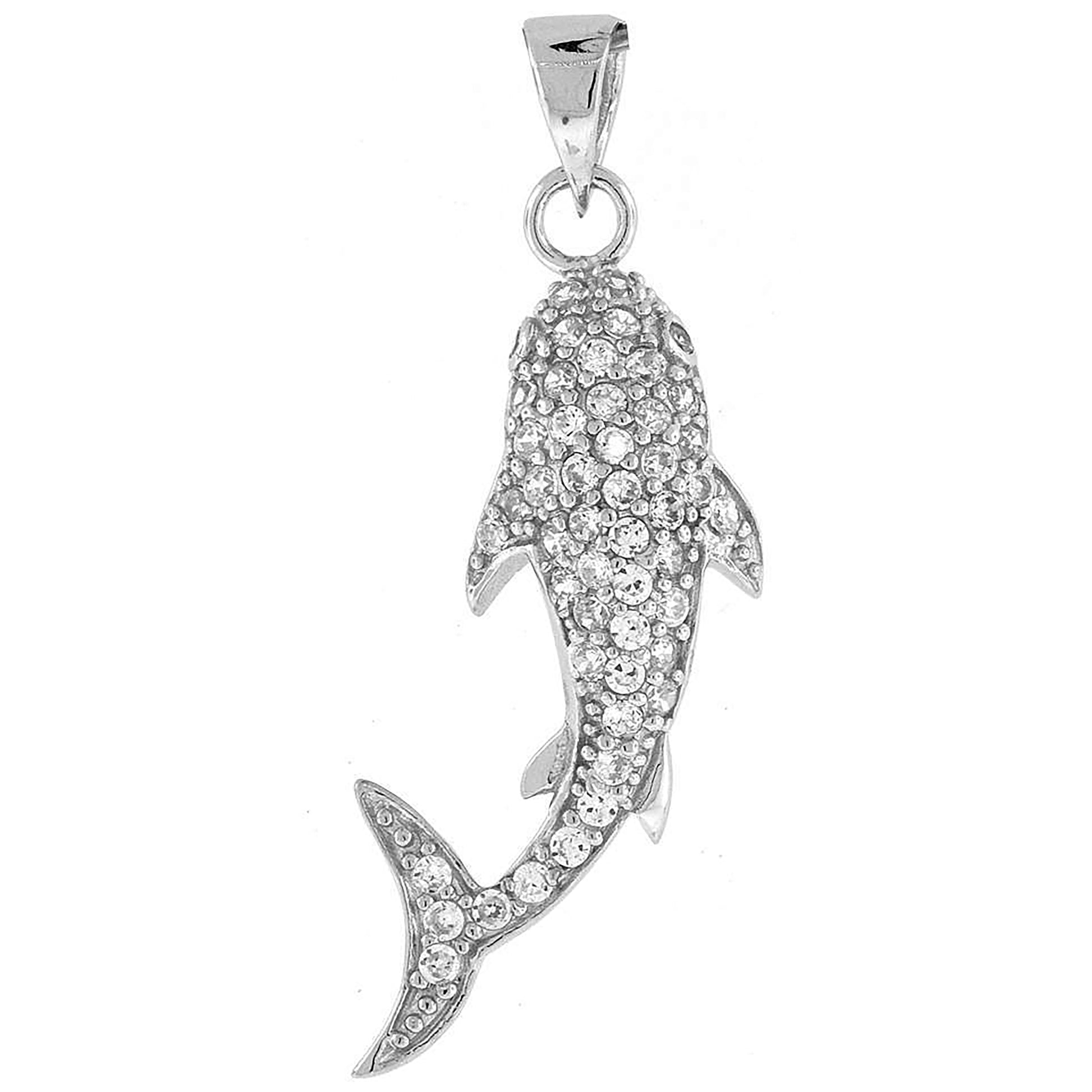 925 Sterling Silver Mens Cubic Zirconia Shark Charm Pendant