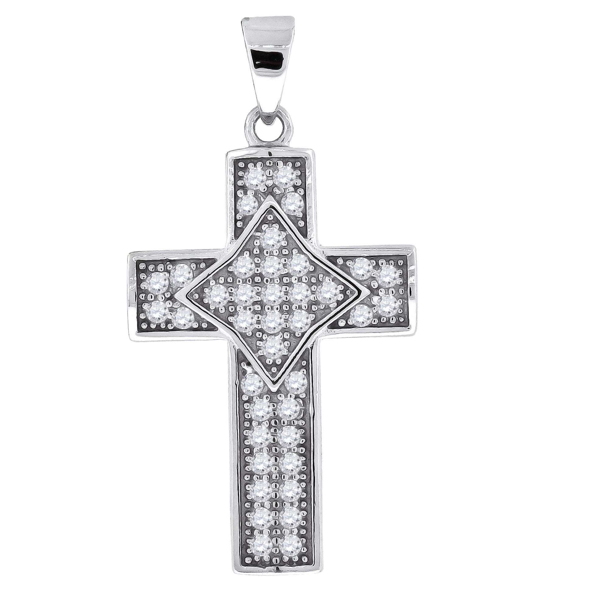 925 Sterling Silver Unisex Cubic Zirconia Cross Religious Charm Pendant