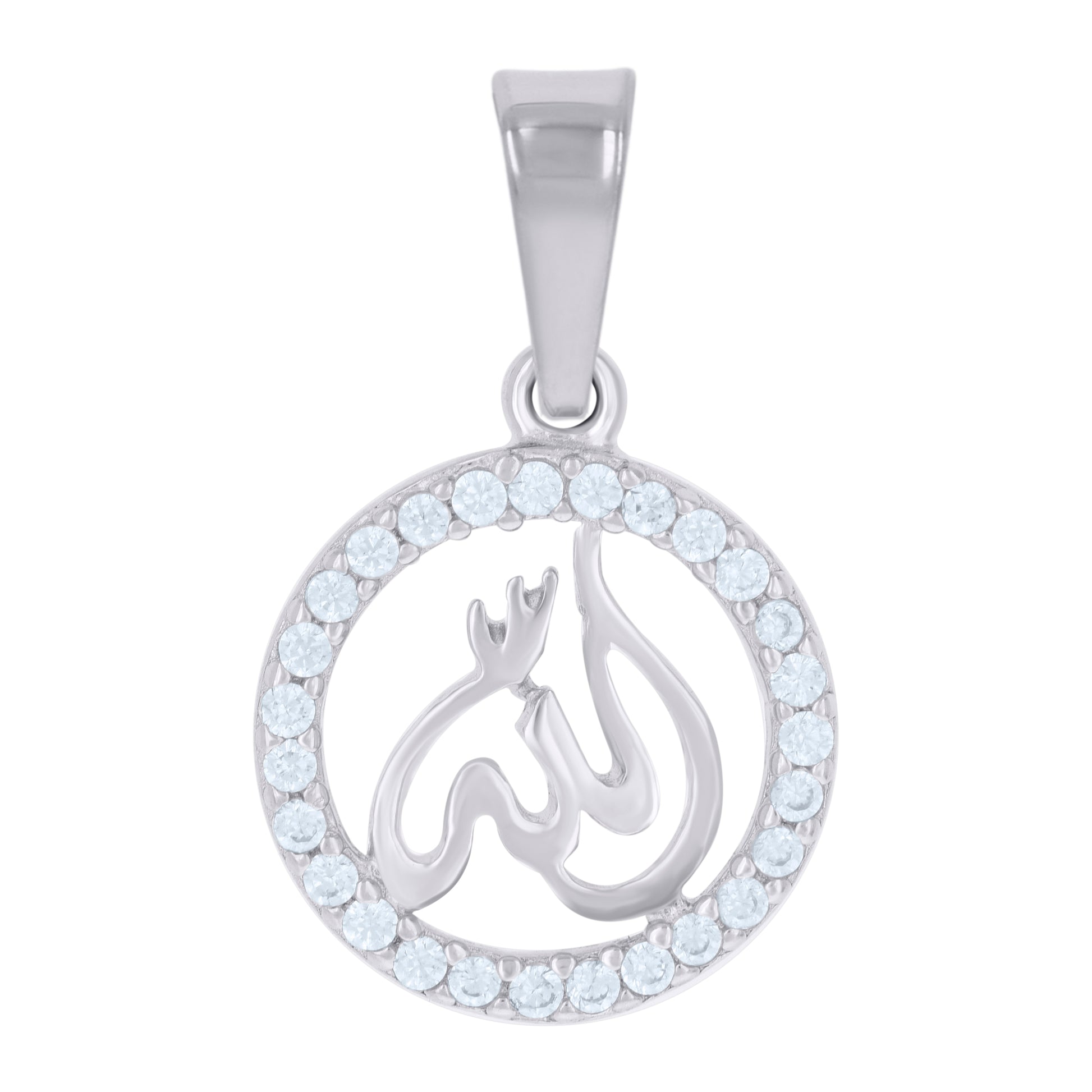 925 Sterling Silver Unisex Cubic Zirconia Allah Religious Charm Pendant