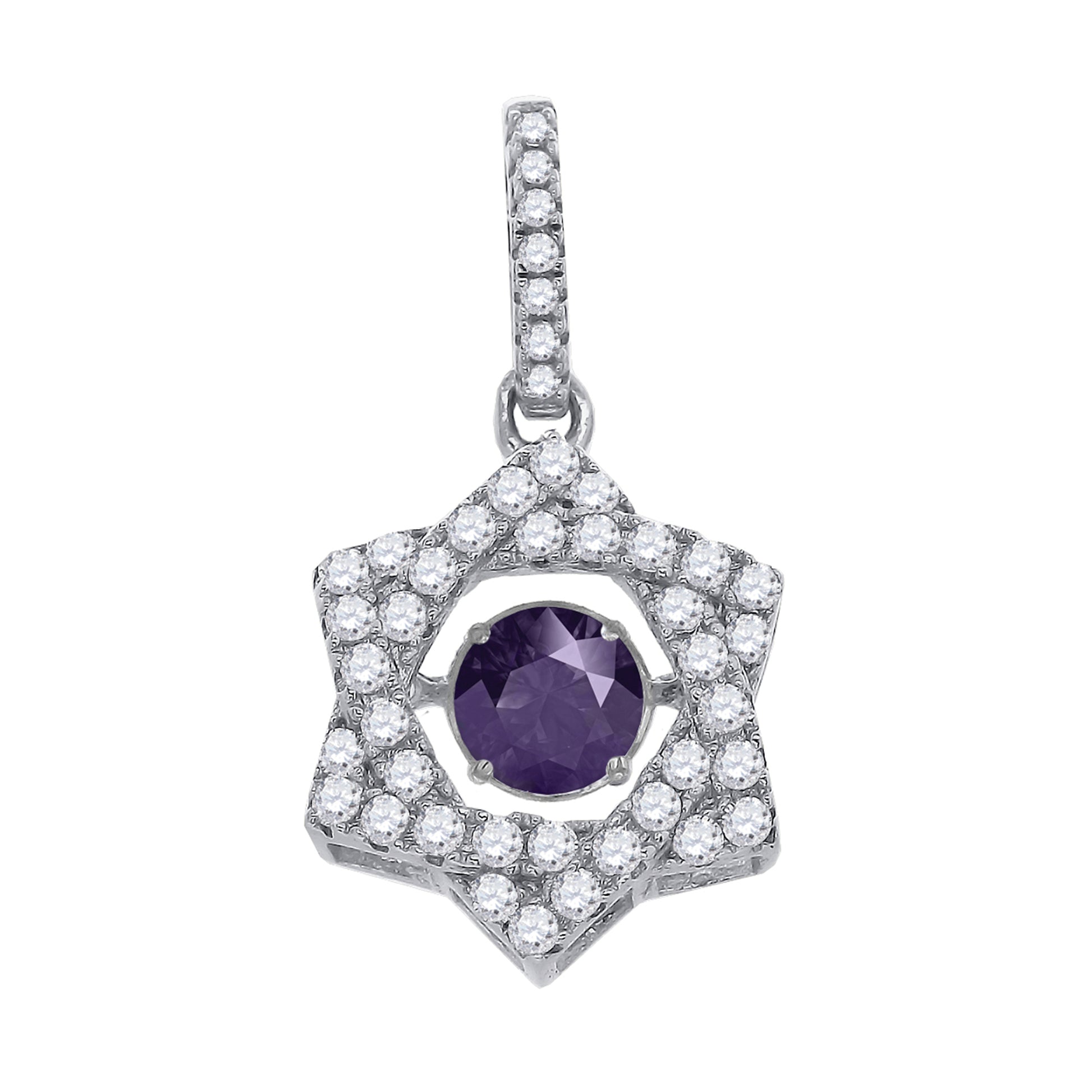 925 Sterling Silver Womens Purple White Cubic Zirconia Star Charm Pendant