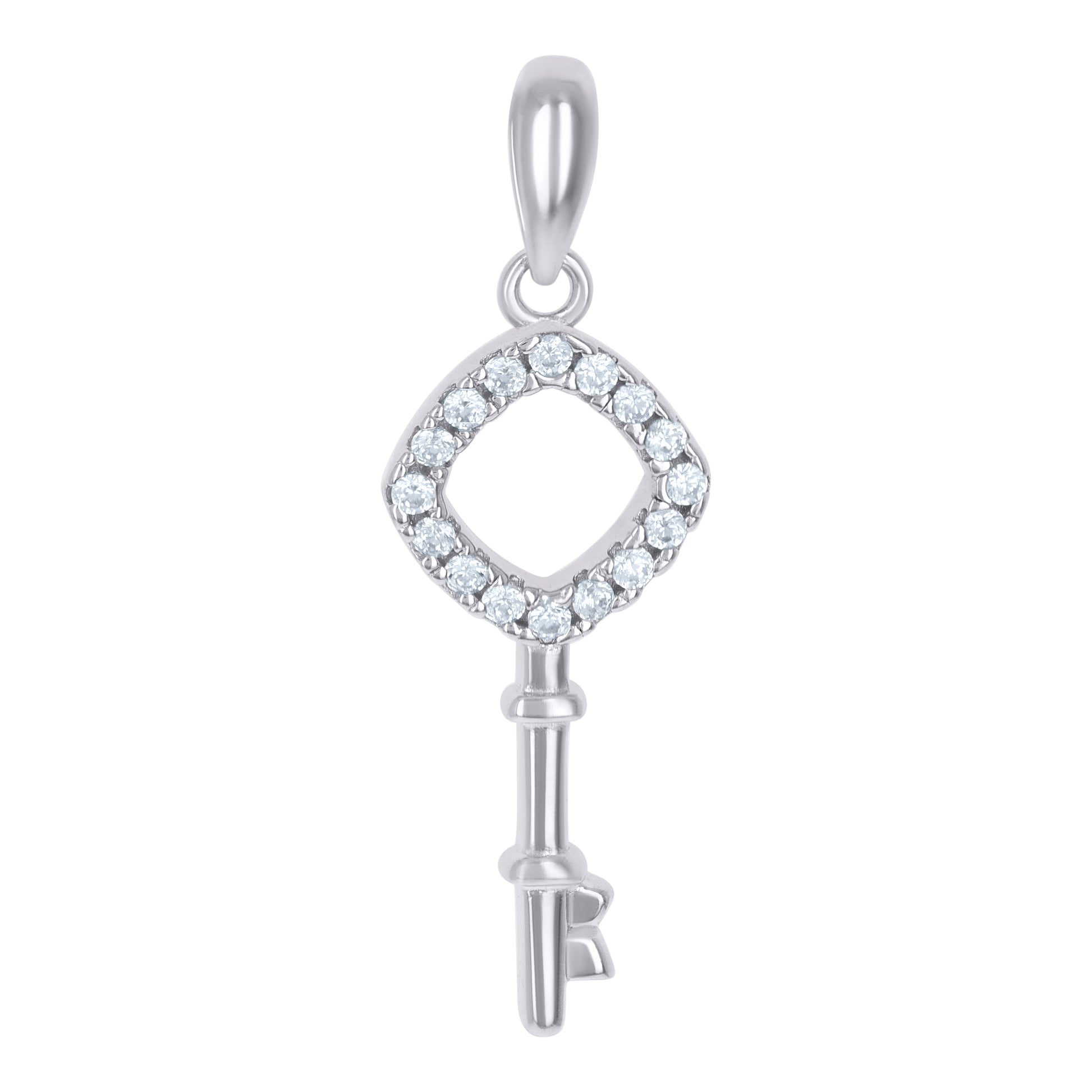 925 Sterling Silver Mens Cubic-Zirconia Key Charm Pendant