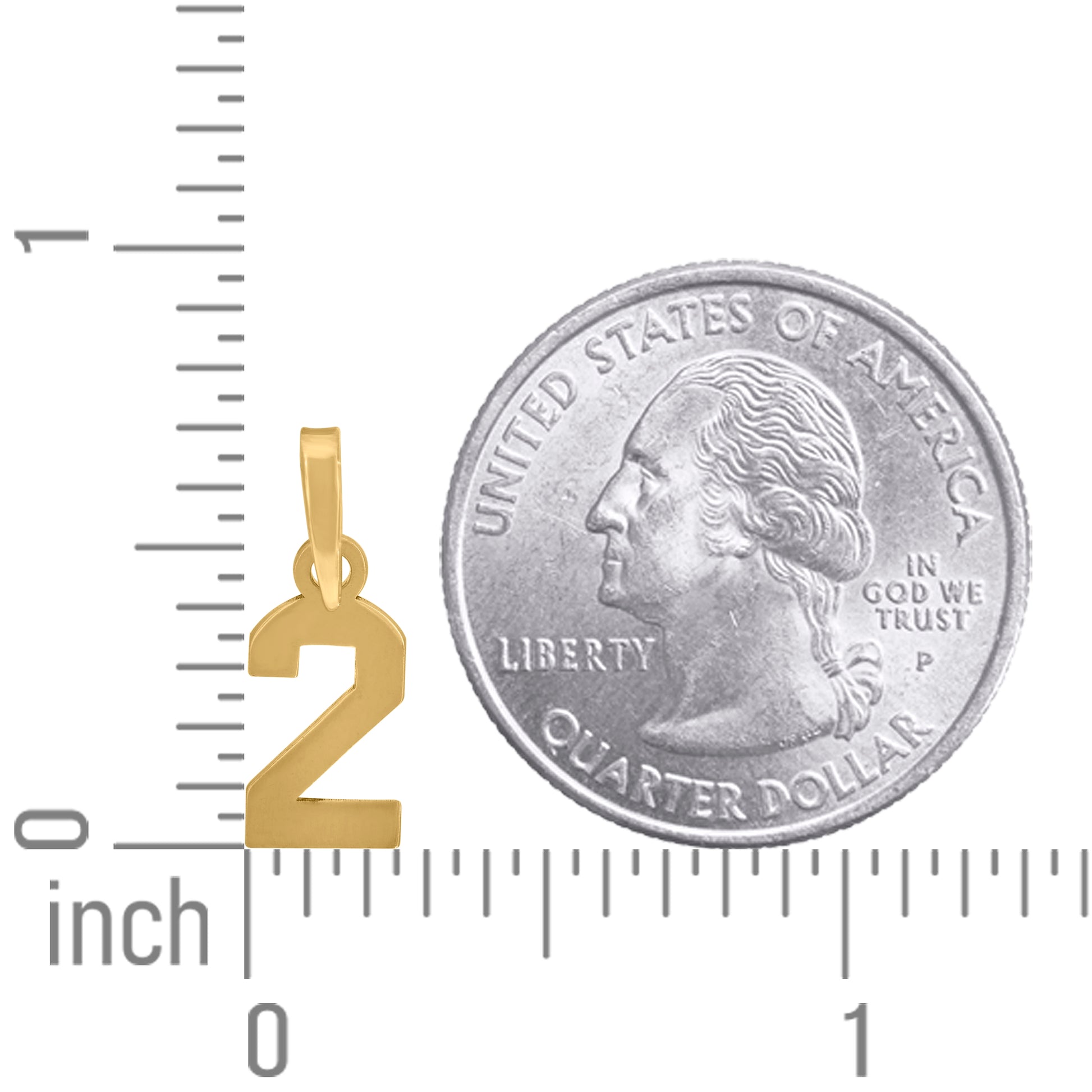 925 Sterling Silver Yellow-Tone Unisex Initial Number 2 Charm Pendant