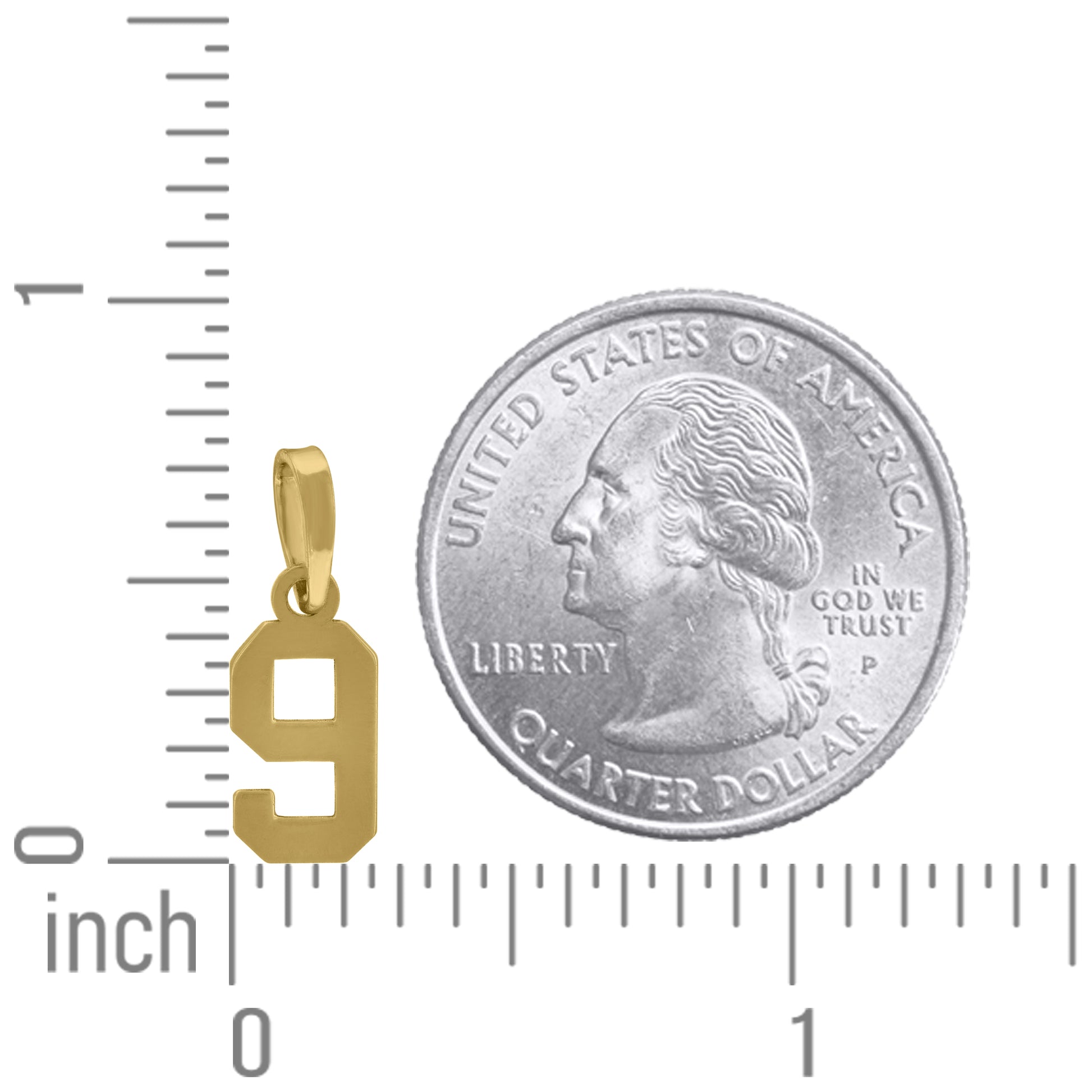 925 Sterling Silver Yellow-Tone Unisex Initial Number 9 Charm Pendant