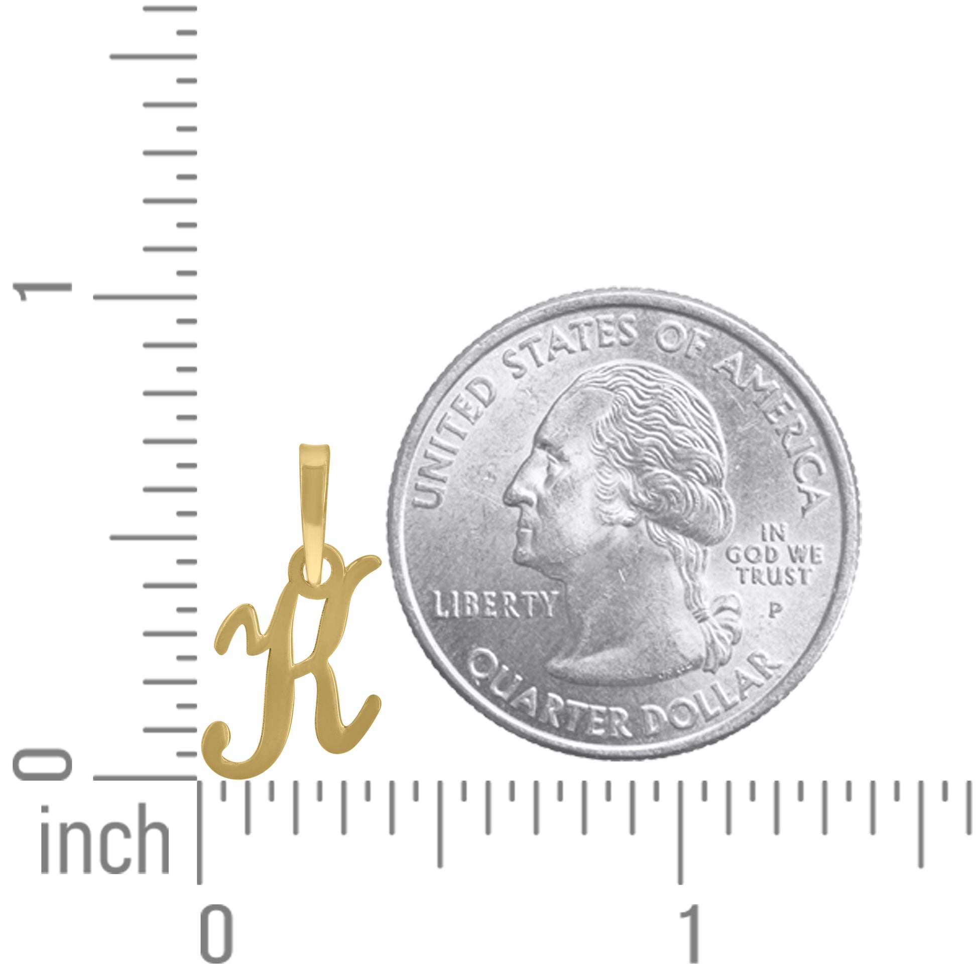 925 Sterling Silver Yellow-Tone Unisex Cursive Initial Alphabet K Charm Pendant