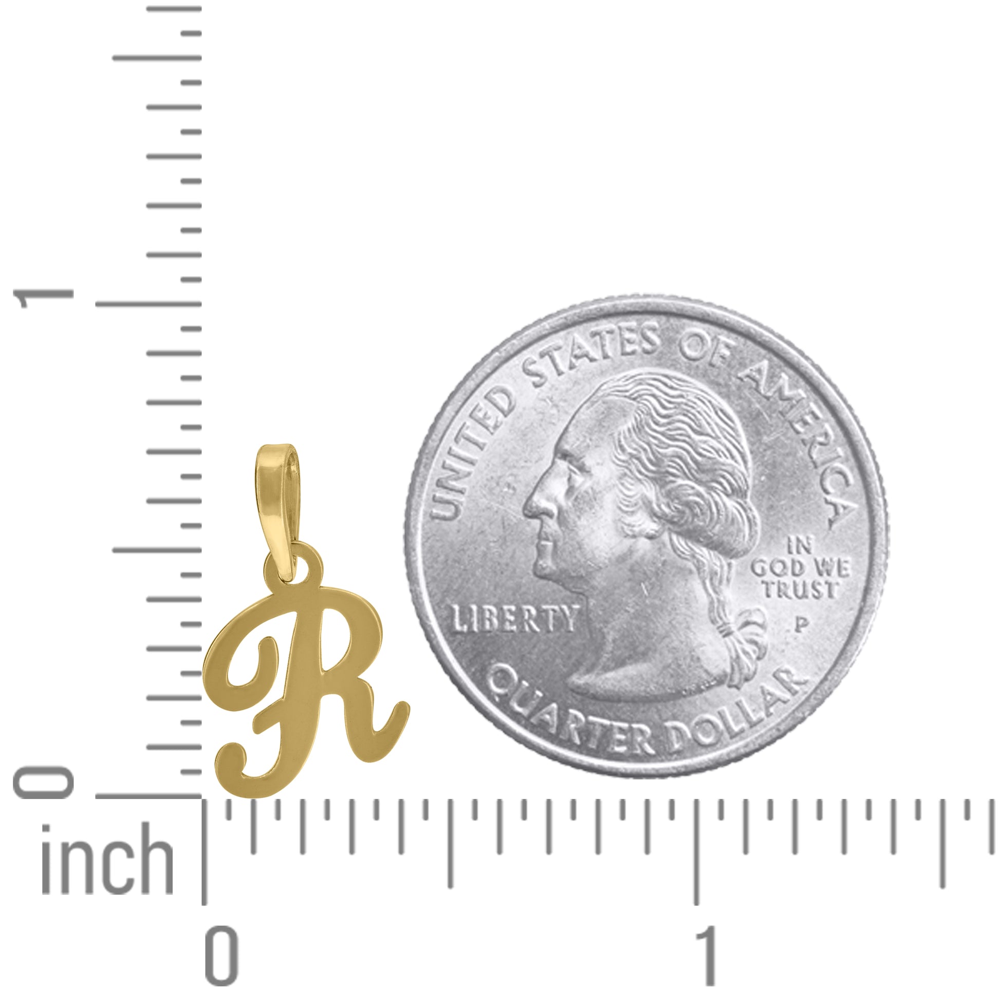 925 Sterling Silver Yellow-Tone Unisex Cursive Initial Alphabet R Charm Pendant