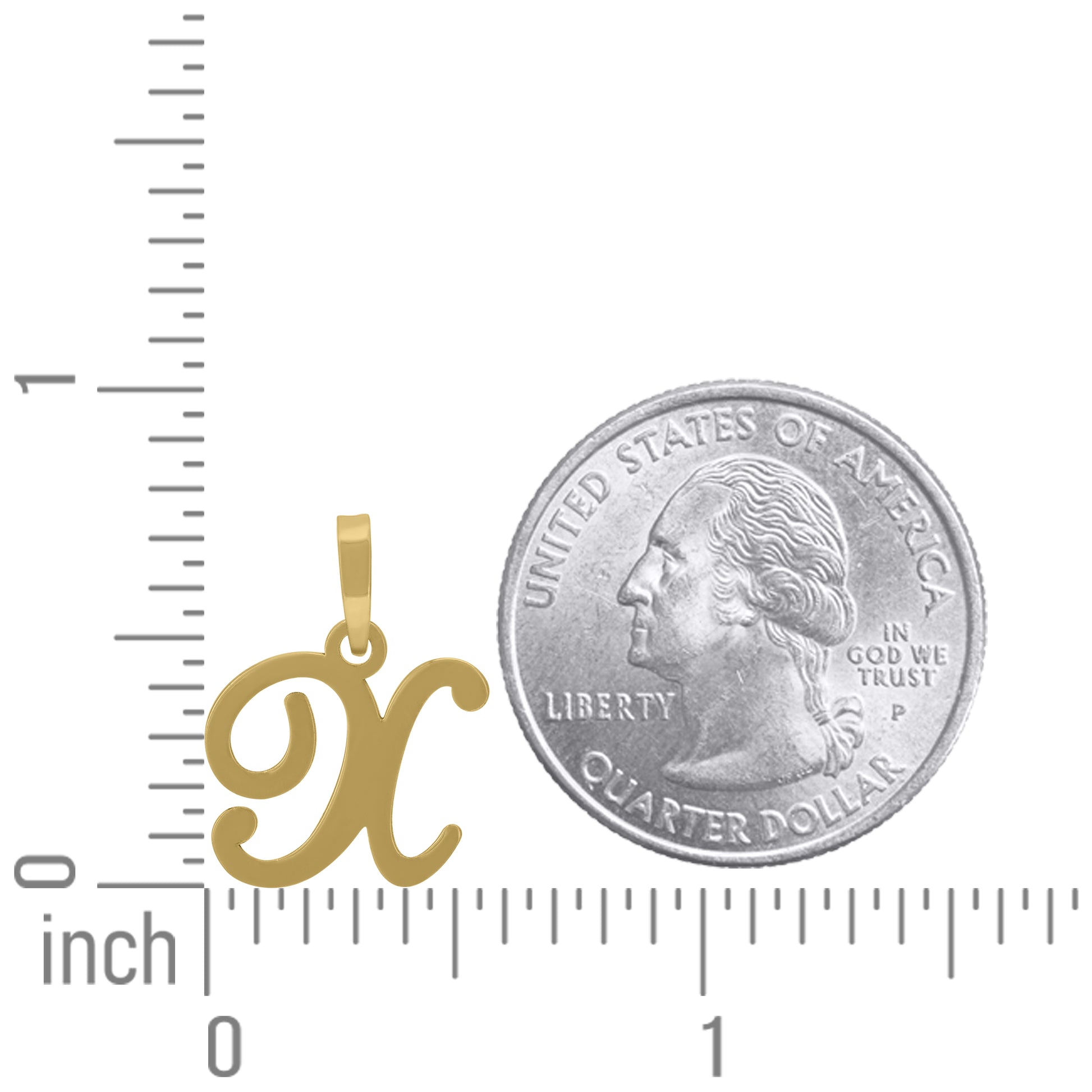 925 Sterling Silver Yellow-Tone Unisex Cursive Initial Alphabet X Charm Pendant