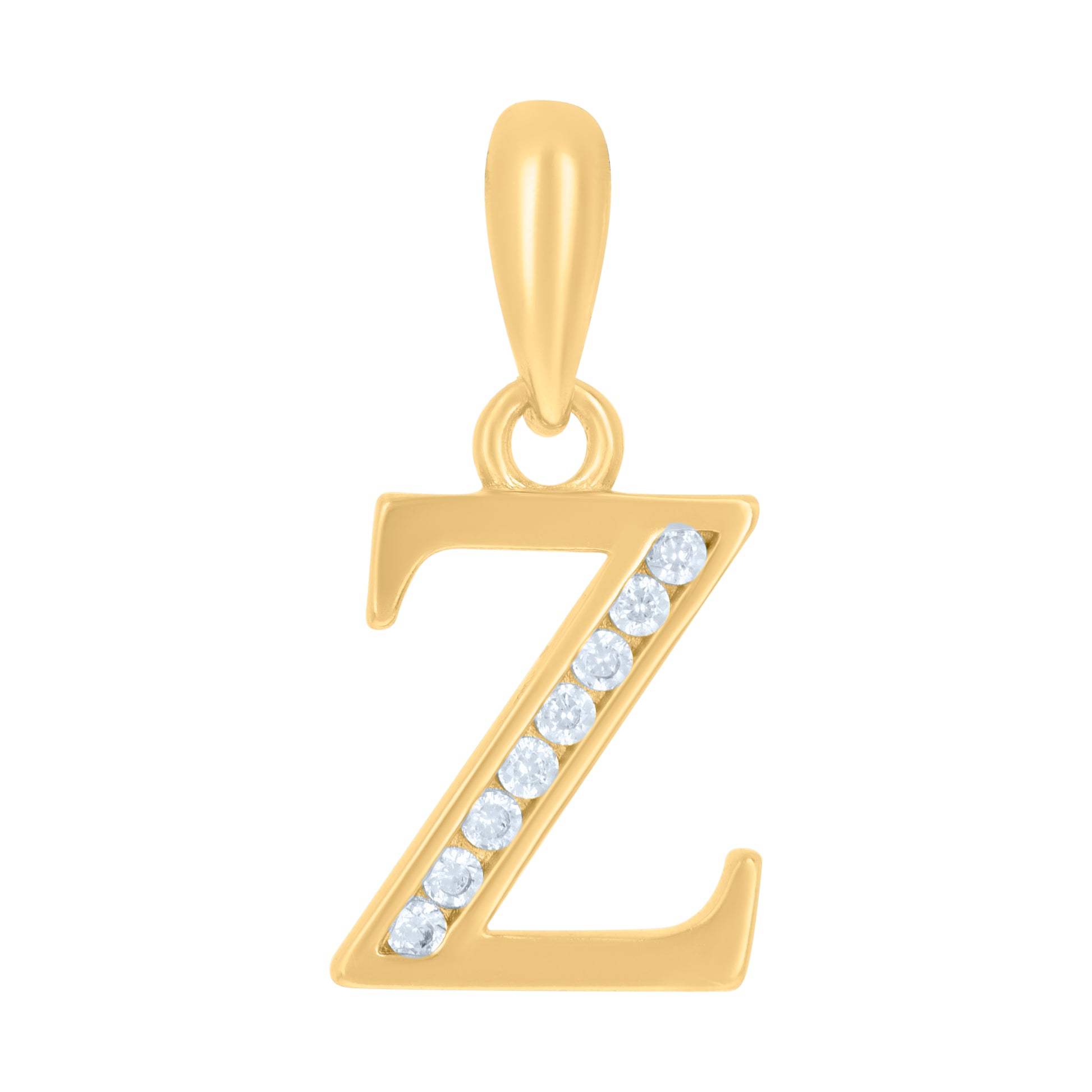 925 Sterling Silver Yellow-Tone Unisex Cubic-Zirconia Initial Alphabet Z Charm Pendant