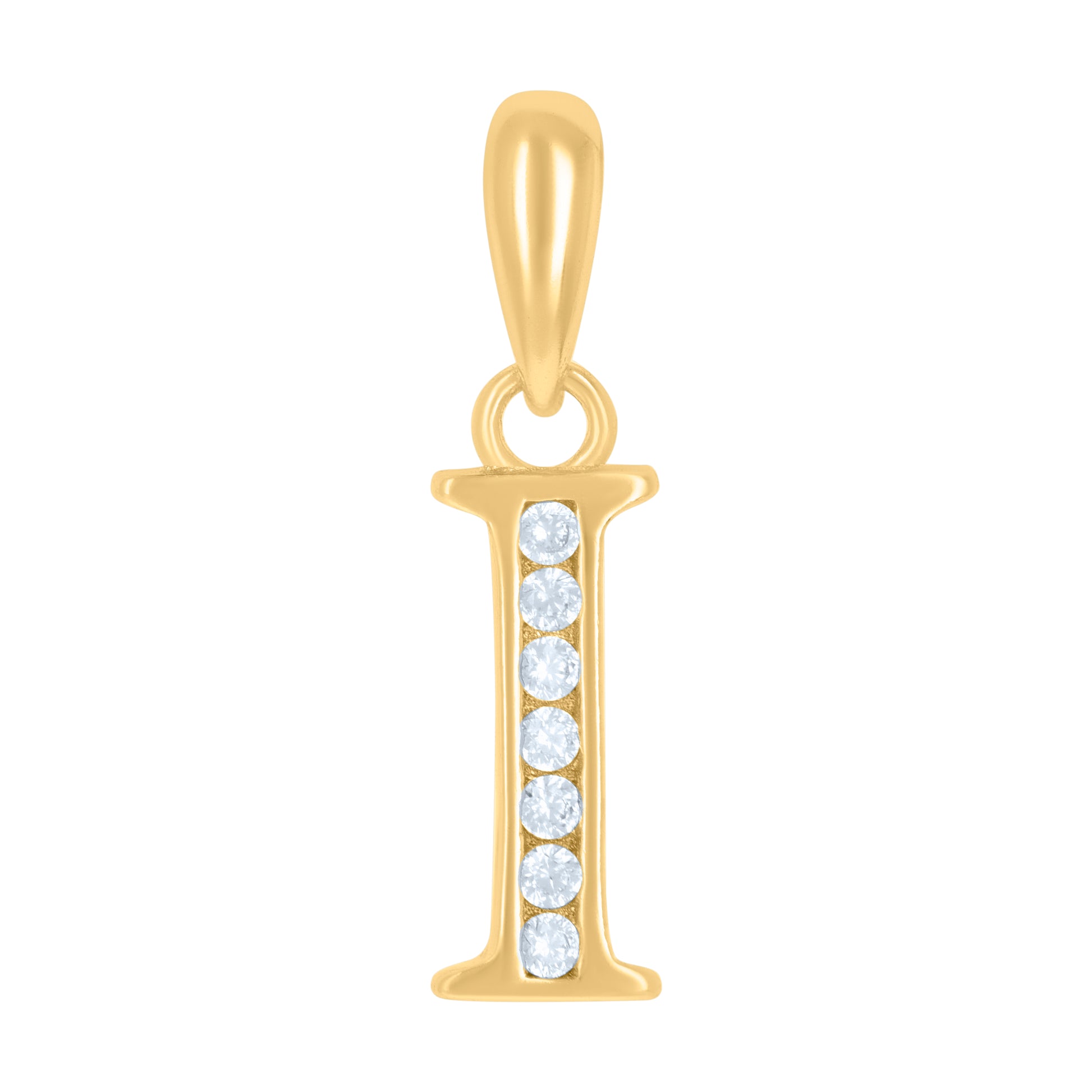 925 Sterling Silver Yellow-Tone Unisex Cubic-Zirconia Initial Alphabet I Charm Pendant