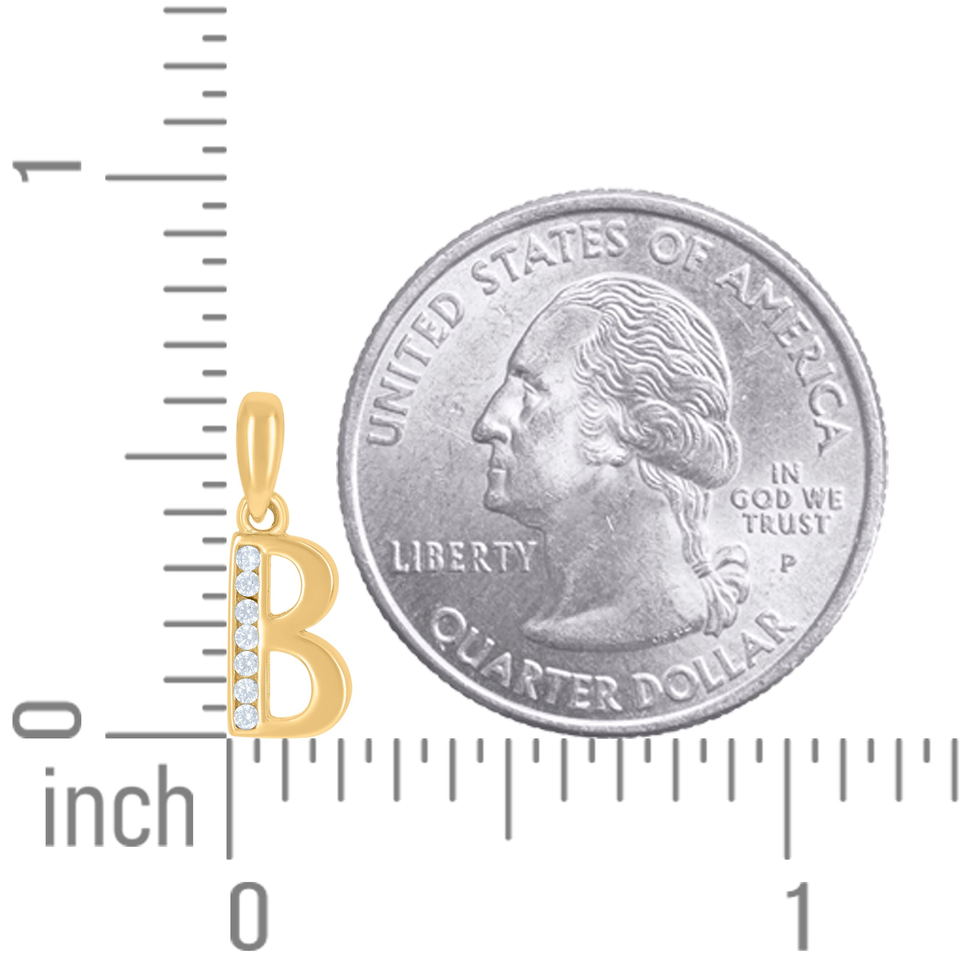925 Sterling Silver Yellow-Tone Unisex Cubic-Zirconia Initial Alphabet B Charm Pendant