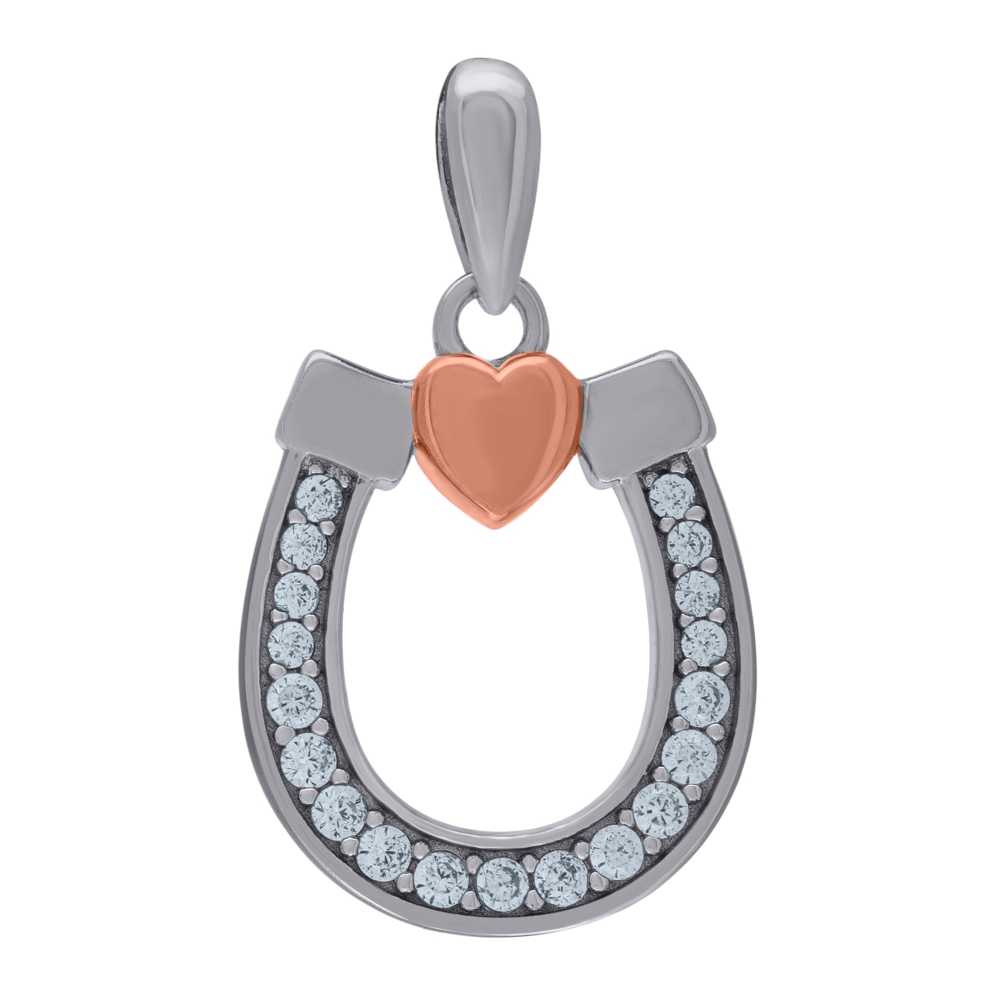 925 Sterling Silver Rose-Tone Unisex Cubic-Zirconia Horseshoe Good Luck Charm Pendant