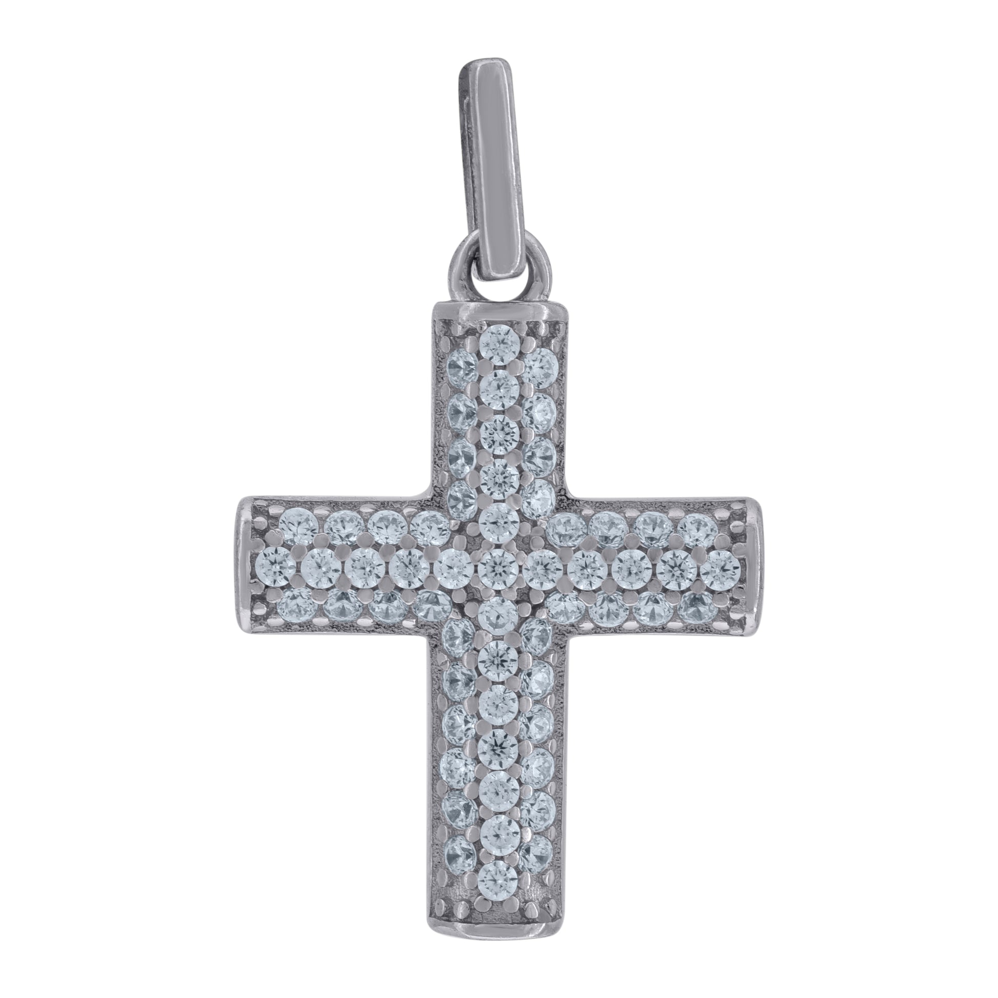 925 Sterling Silver Unisex Cubic-Zirconia Cross Religious Charm Pendant