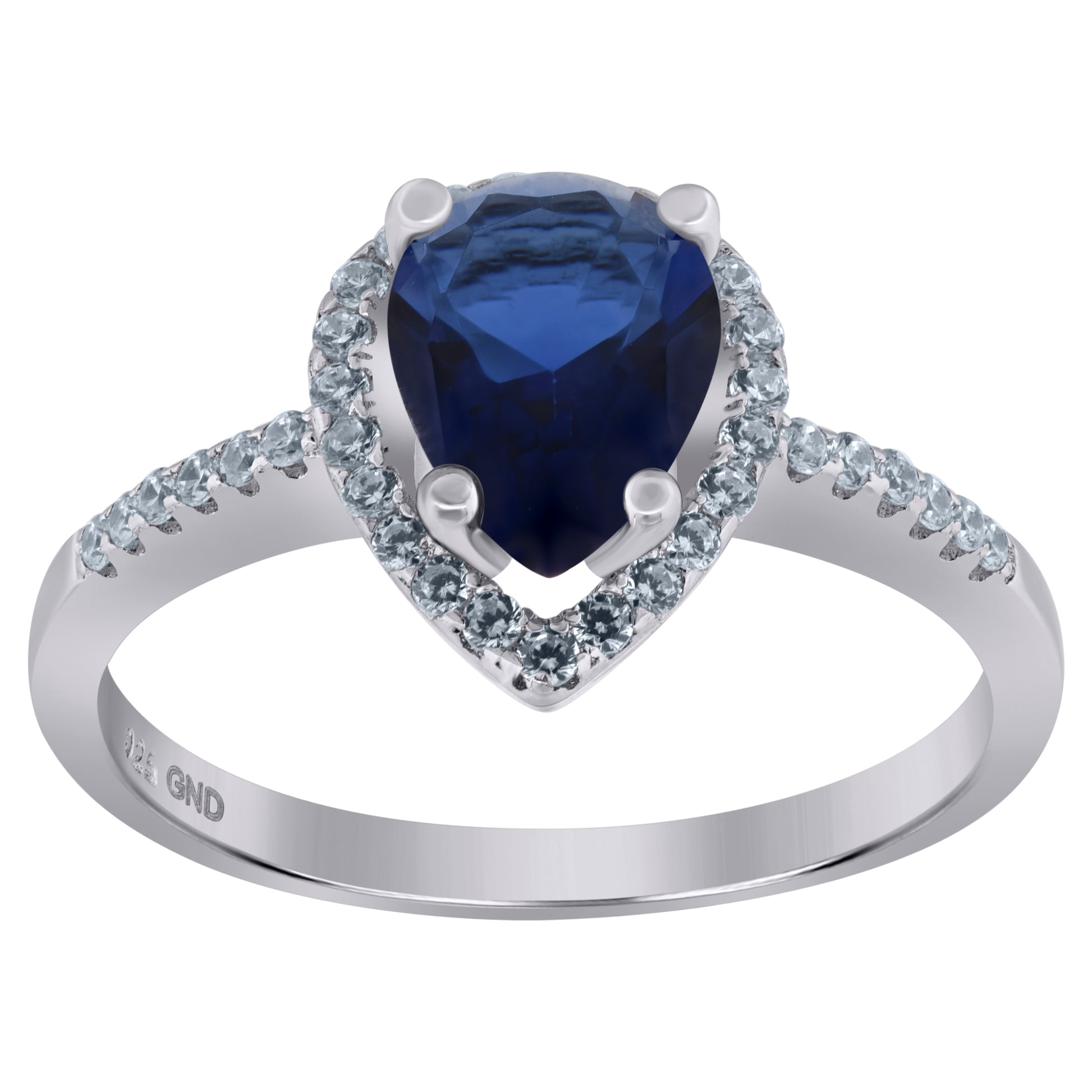 925 Sterling Silver Womens Royal Blue Pear Cubic Zirconia Fashion Ring Size 6