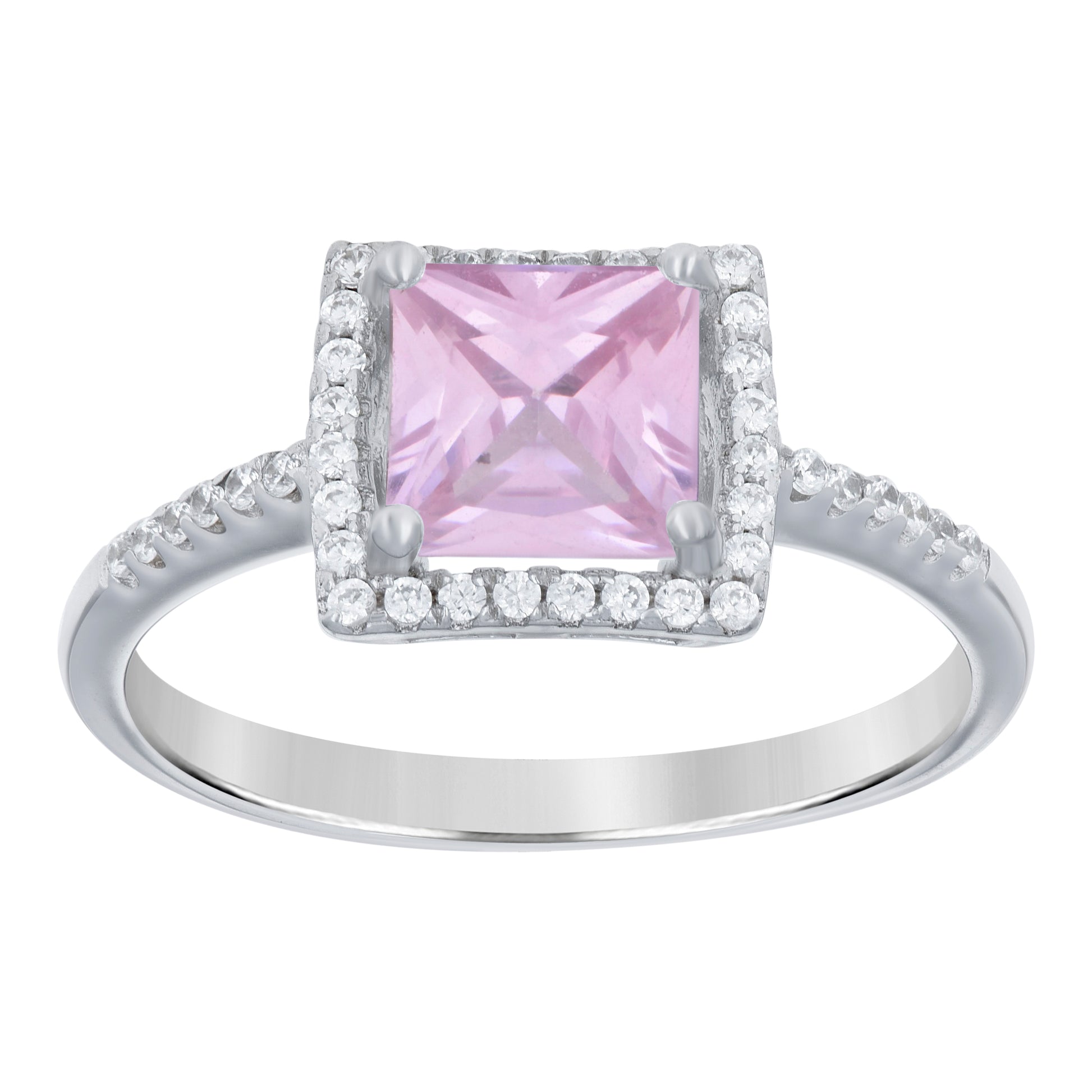 925 Sterling Silver Womens Pink Princess Cut Cubic Zirconia Fashion Ring Size 6