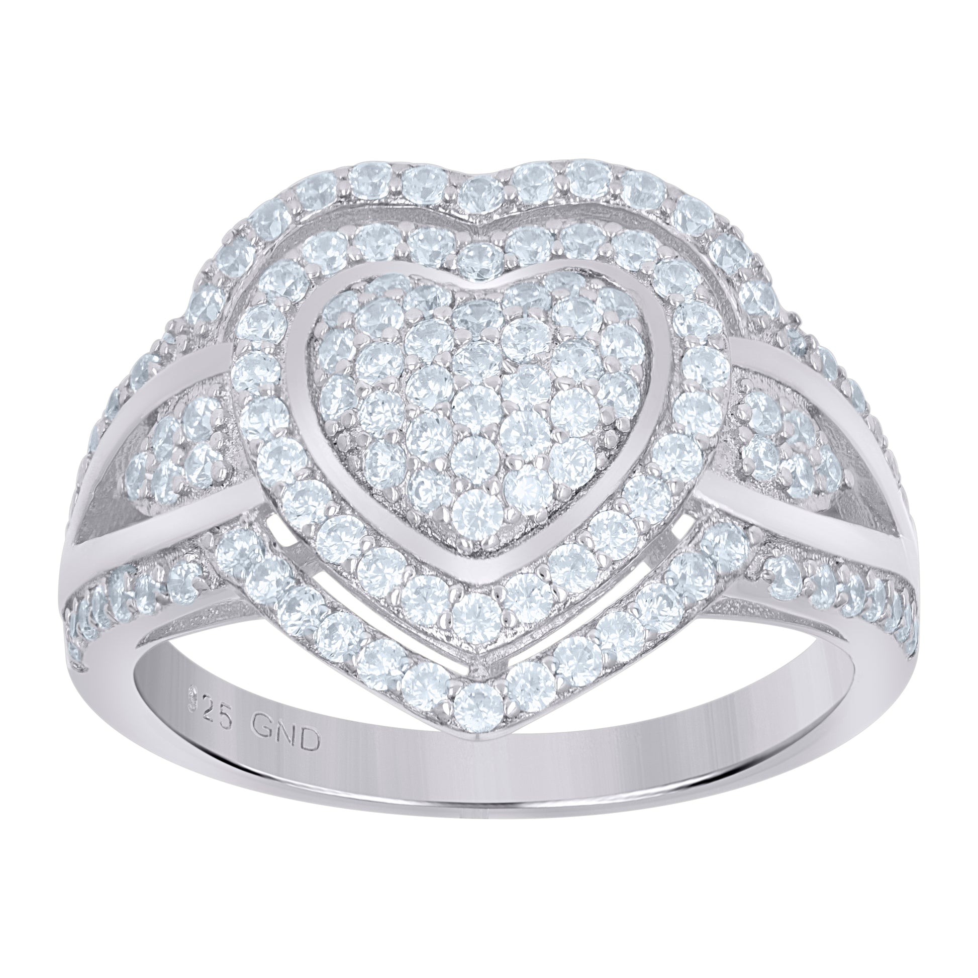 925 Sterling Silver Womens Cubic-Zirconia Heart Ring