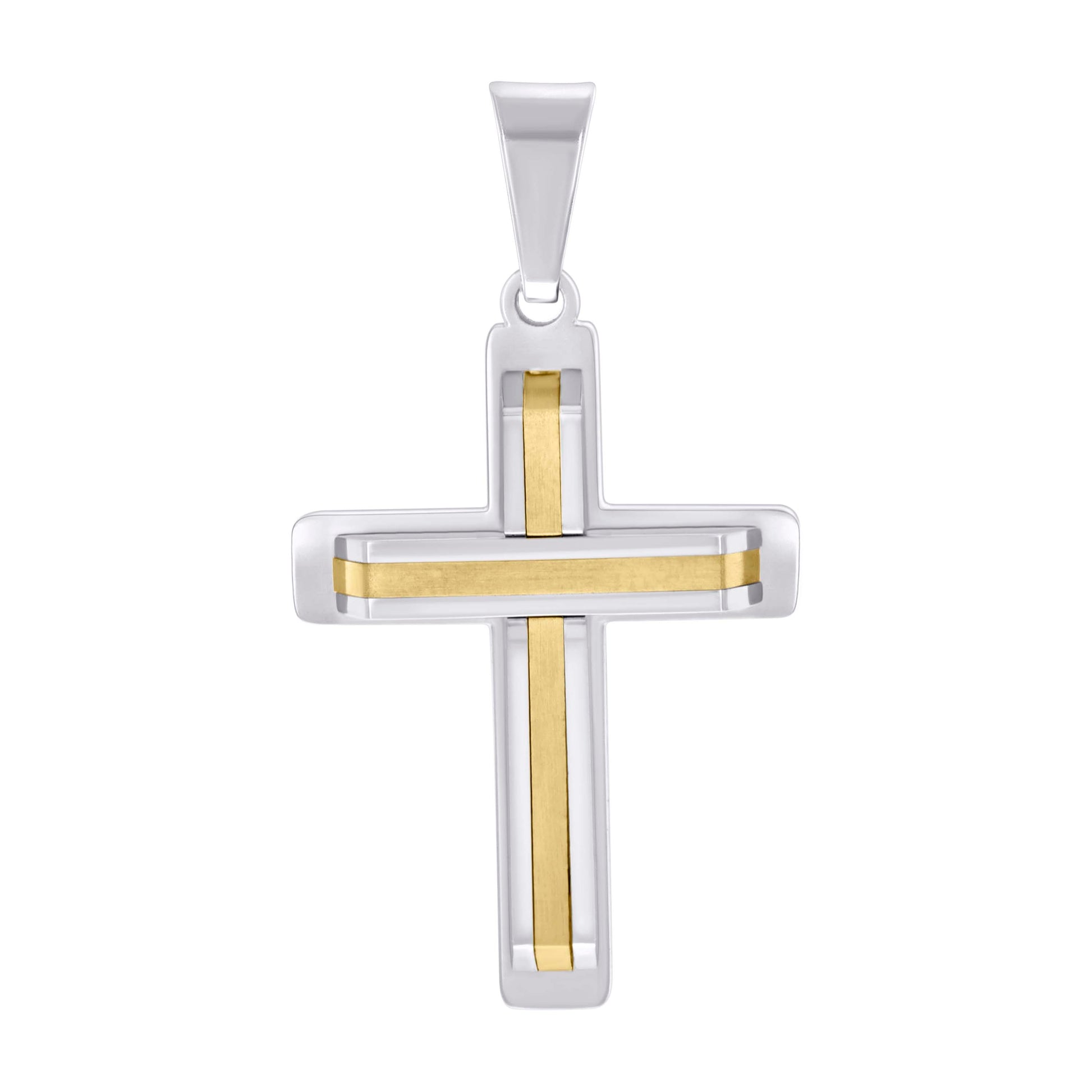 Stainless Steel Yellow-tone Mens Cross Religious Charm Pendant