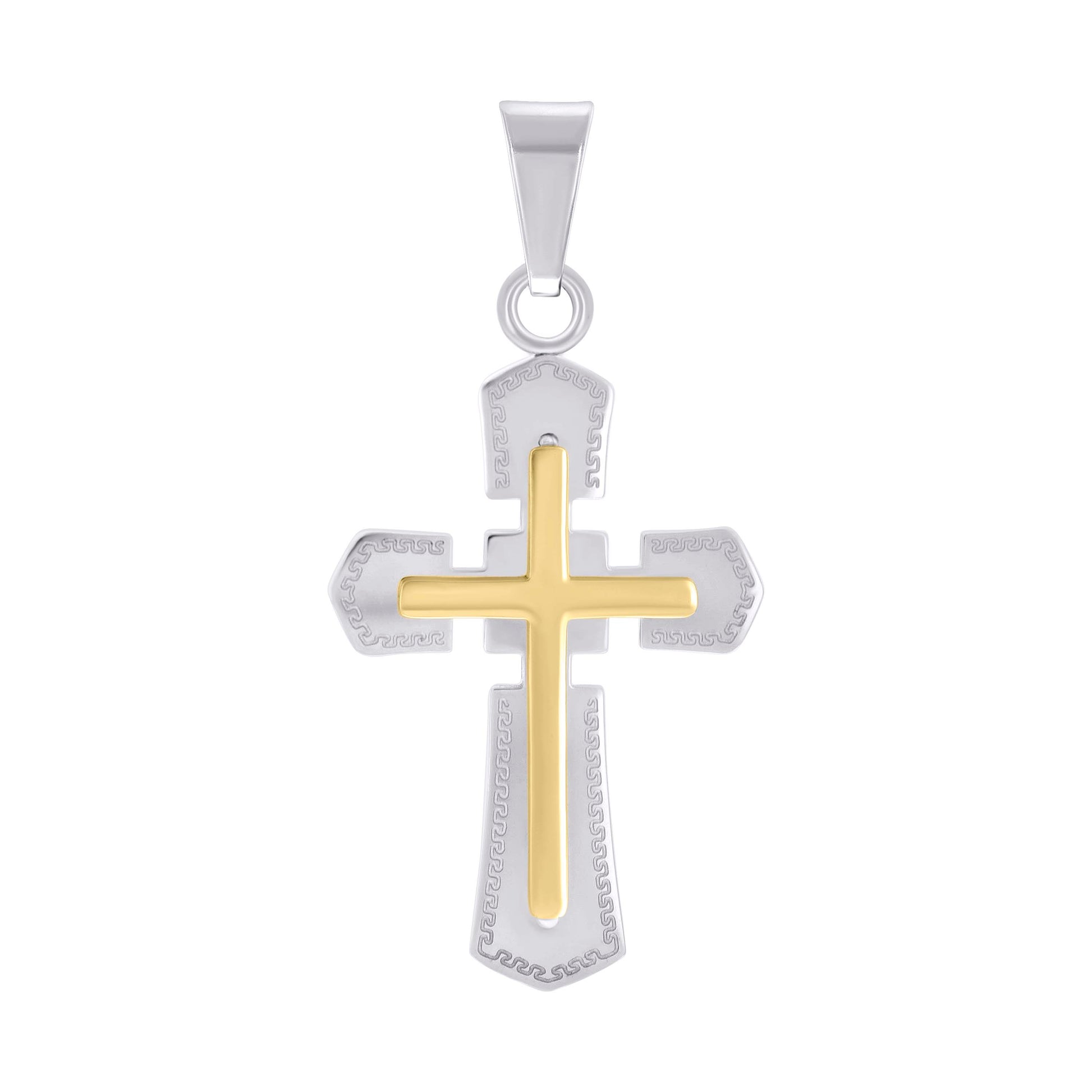 Stainless Steel Yellow-tone Mens Cross Religious Charm Pendant