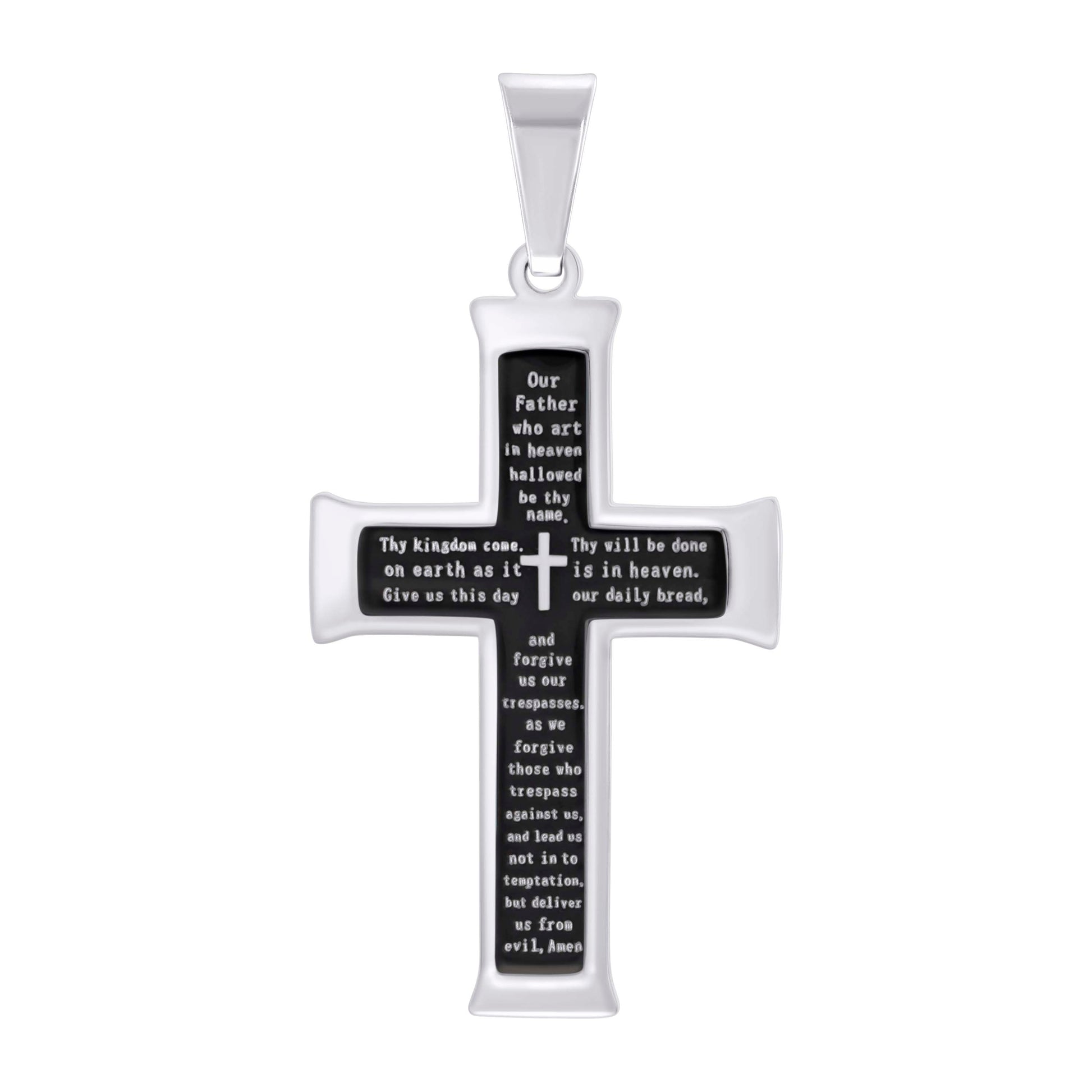 Stainless Steel Black-tone Mens Lord's Prayer Cross Religious Charm Pendant