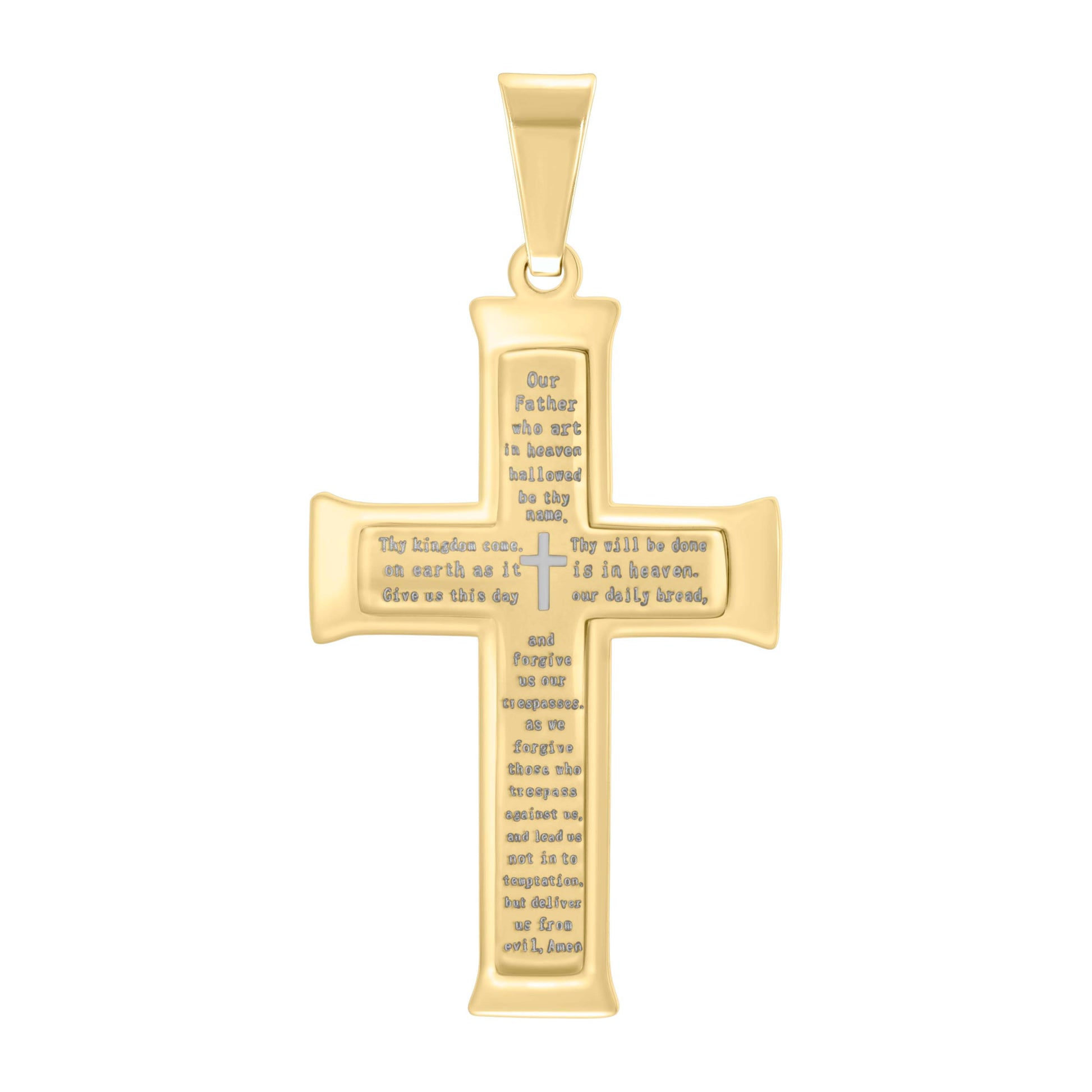 Stainless Steel Yellow-tone English Lord's Prayer Cross Religious Charm Pendant