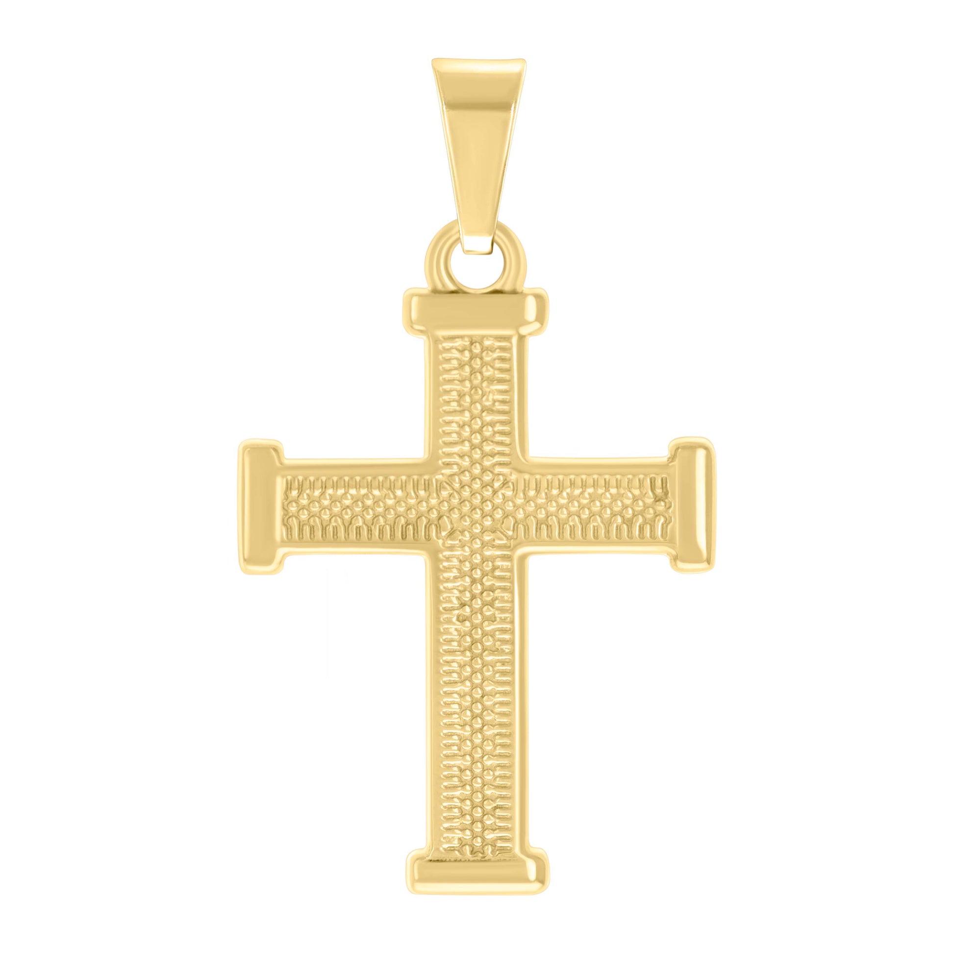 Stainless Steel Yellow-tone Mens Cross Religious Charm Pendant