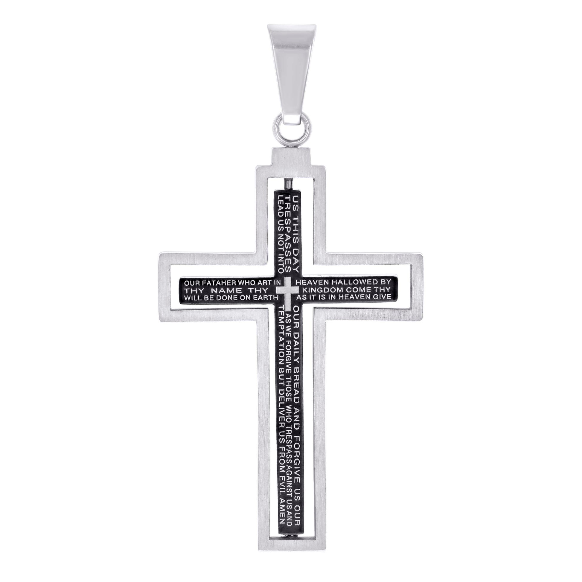 Stainless Steel Black-tone Mens Lord's Prayer Cross Religious Charm Pendant