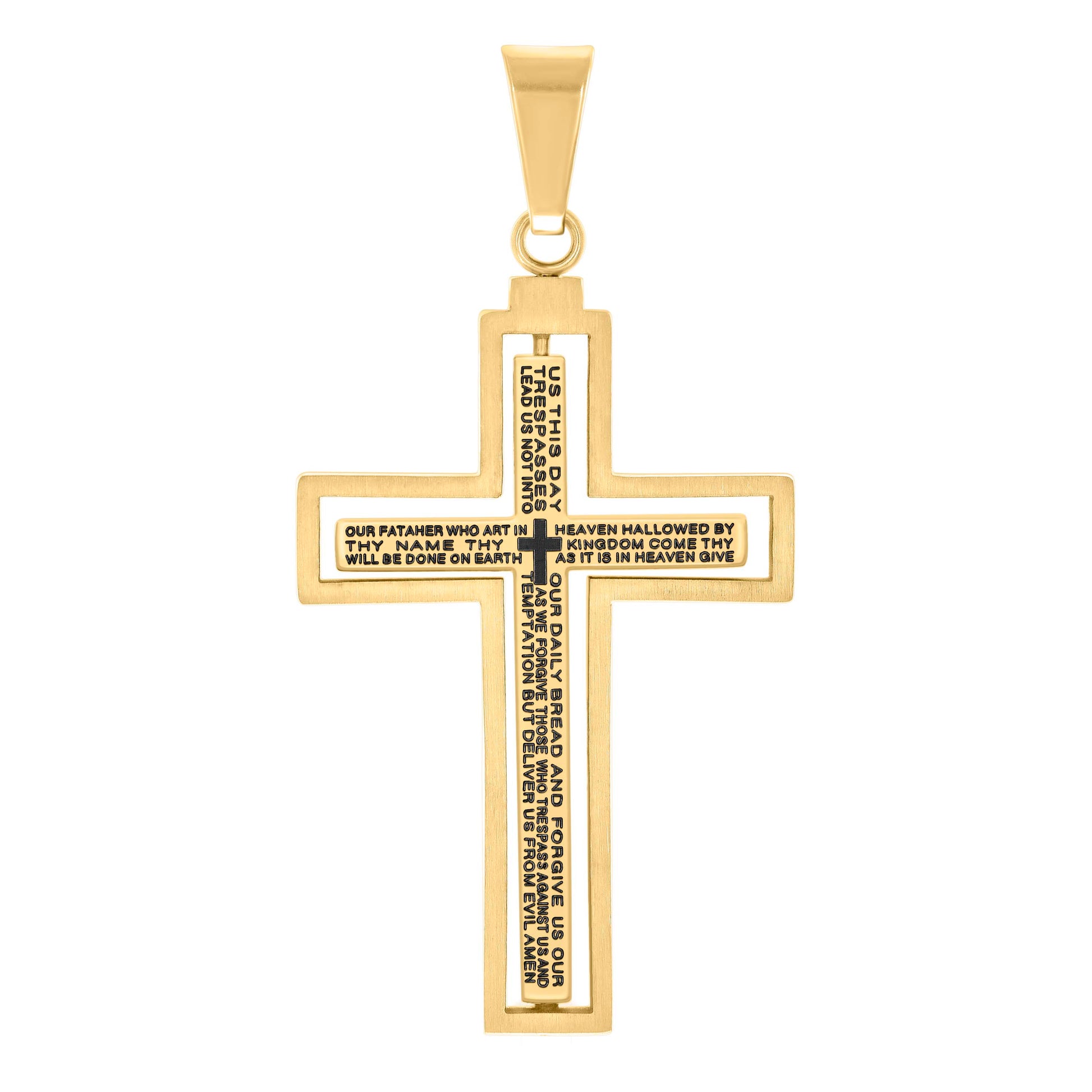 Stainless Steel Yellow Black-tone Mens Lord's Prayer Cross Religious Charm Pendant