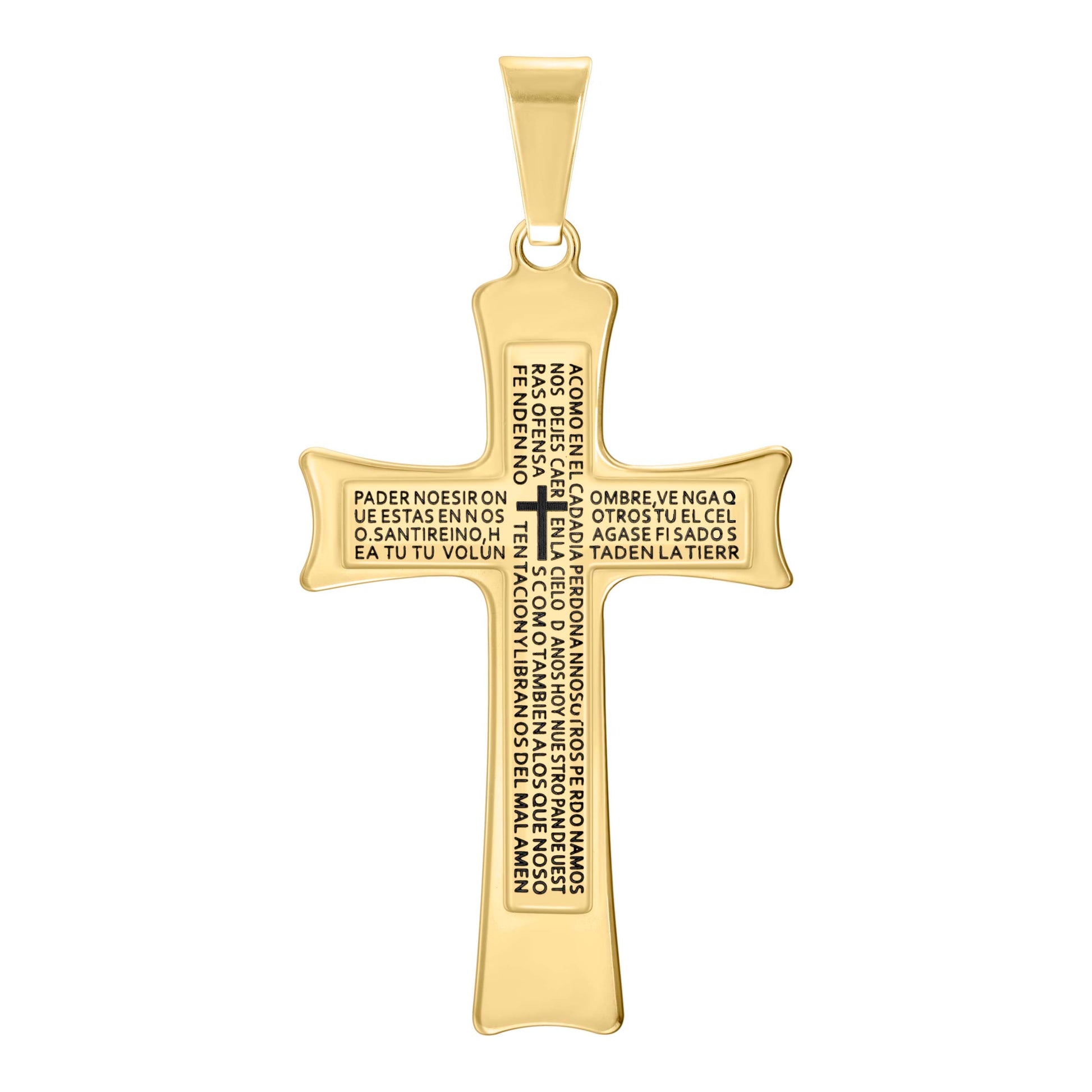Stainless Steel Yellow Black-tone Mens Cross Religious Charm Pendant