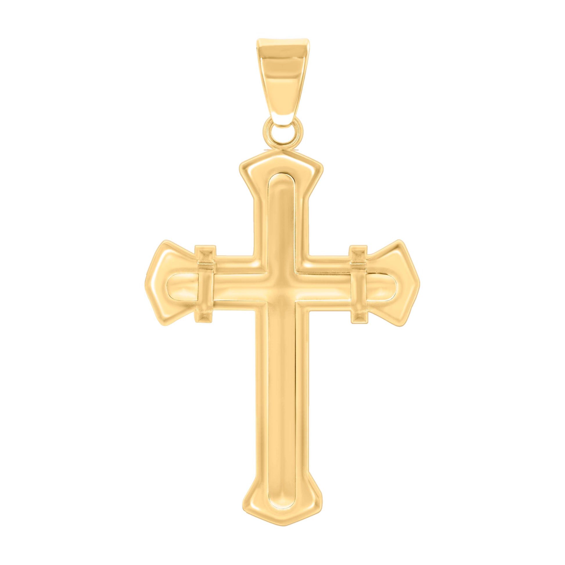 Stainless Steel Yellow-tone Mens Cross Religious Charm Pendant