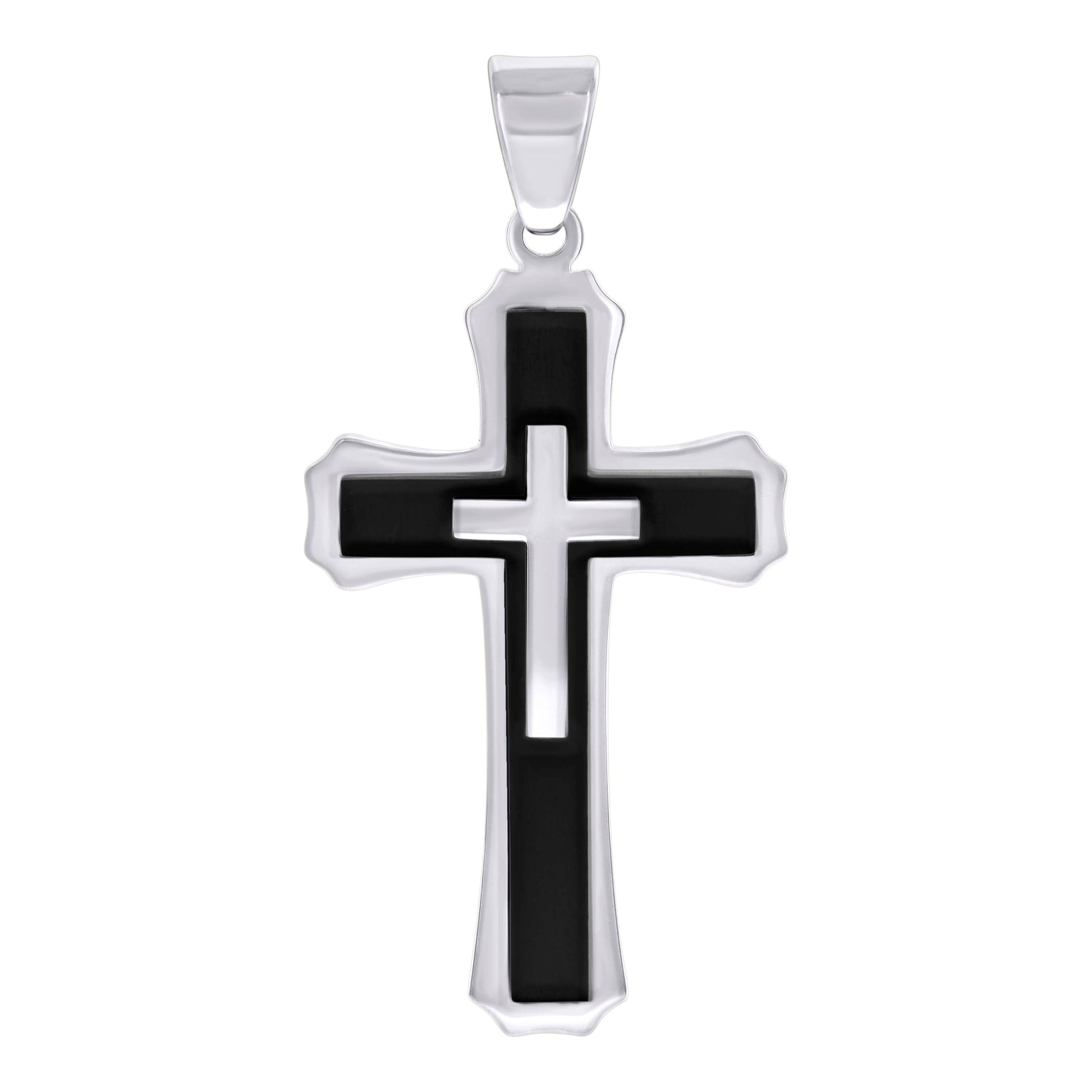 Stainless Steel Black-tone Mens Cross Religious Charm Pendant