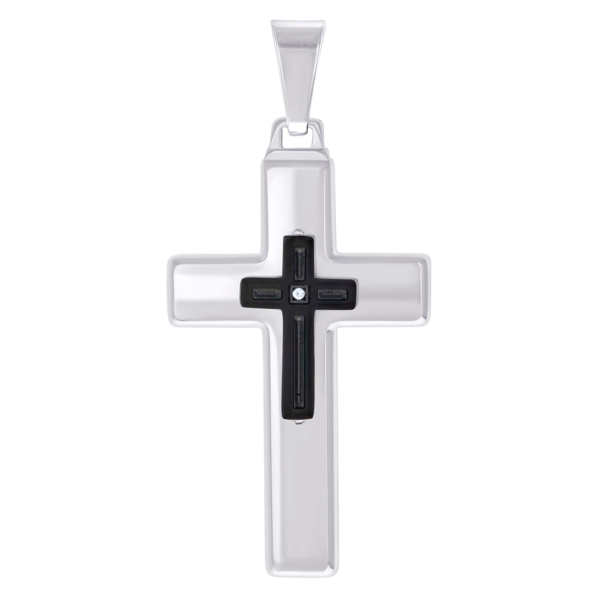 Stainless Steel Black-tone Mens Cubic-Zirconia Cross Religious Charm Pendant