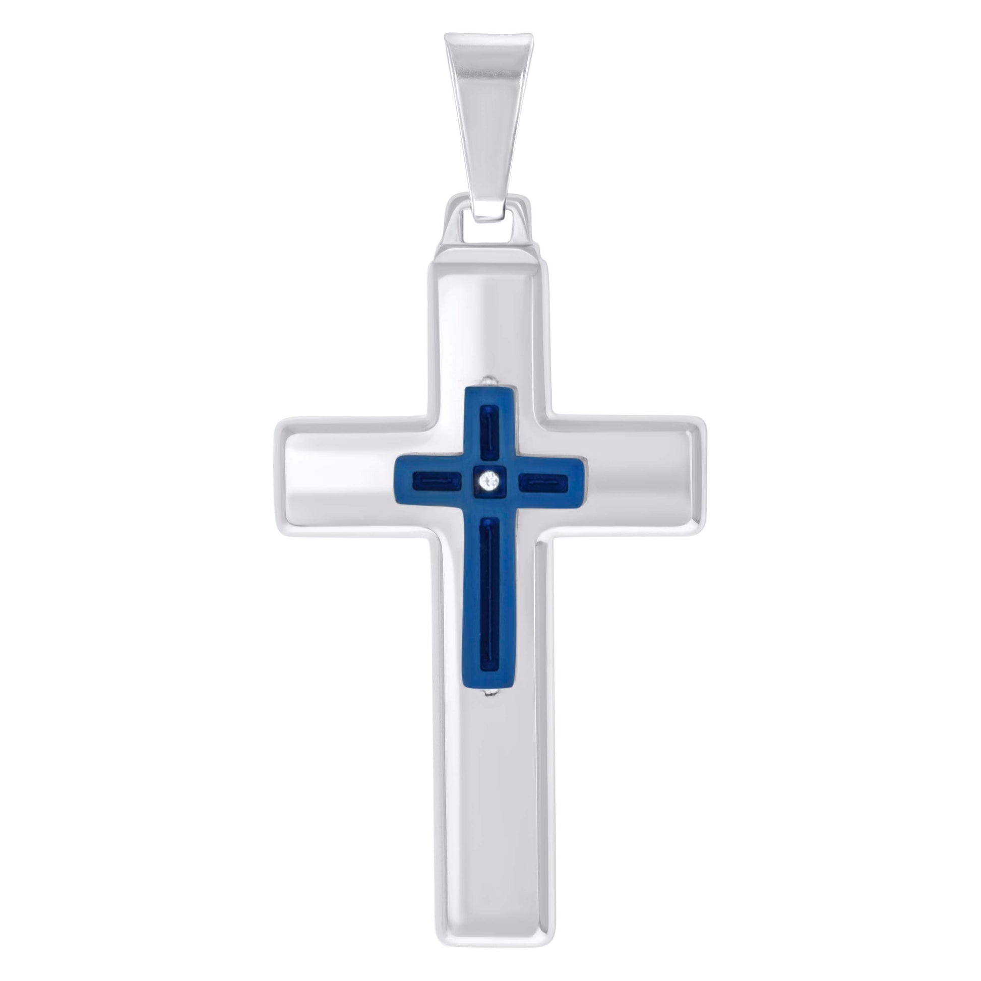 Stainless Steel Blue-tone Mens Cubic-Zirconia Cross Religious Charm Pendant