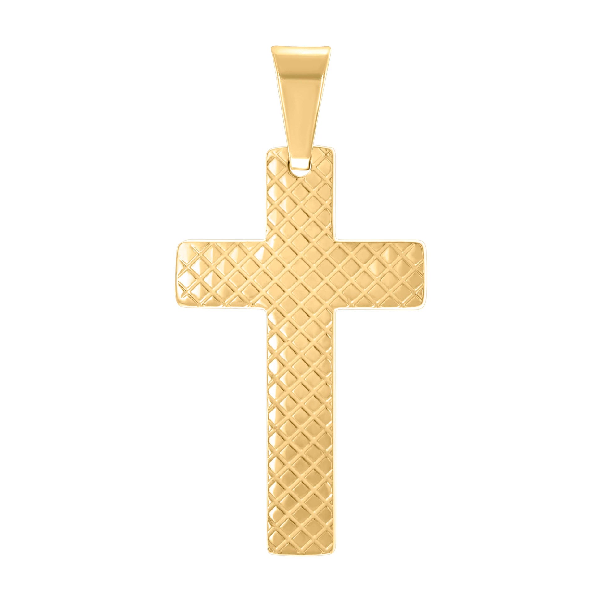 Stainless Steel Yellow-tone Mens Cross Religious Textured Charm Pendant