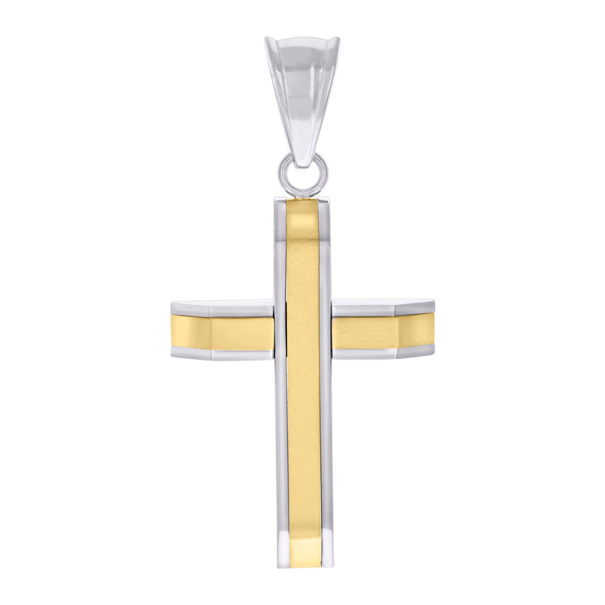 Stainless Steel Yellow-tone Mens Cross Religious Charm Pendant
