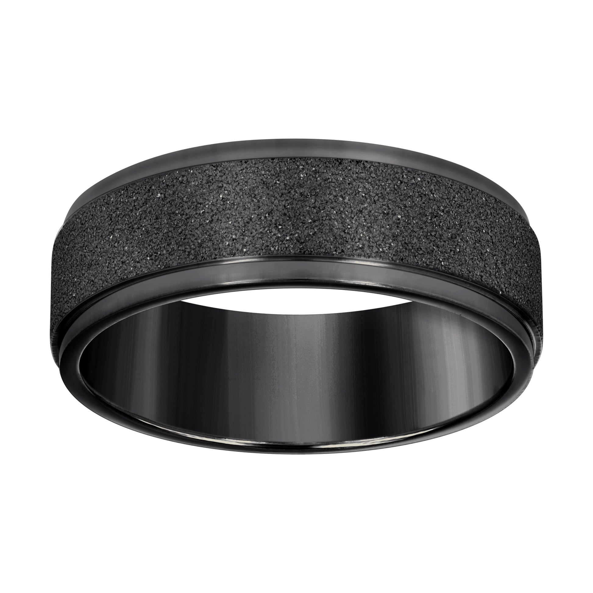 Stainless Steel Black-tone Mens Stone Finish Comfort-Fit Wedding Band 8mm Size 9
