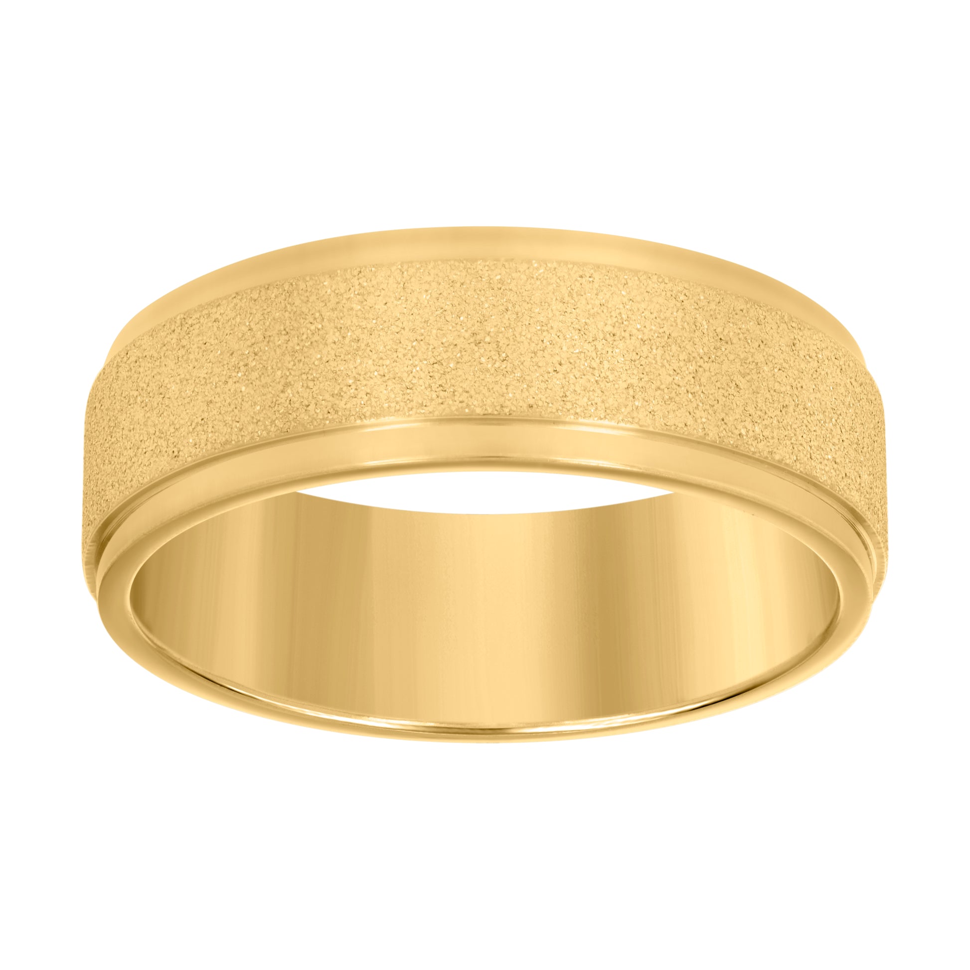 Stainless Steel Yellow-tone Mens Stone Finish Comfort-Fit Wedding Band 8mm Size 9
