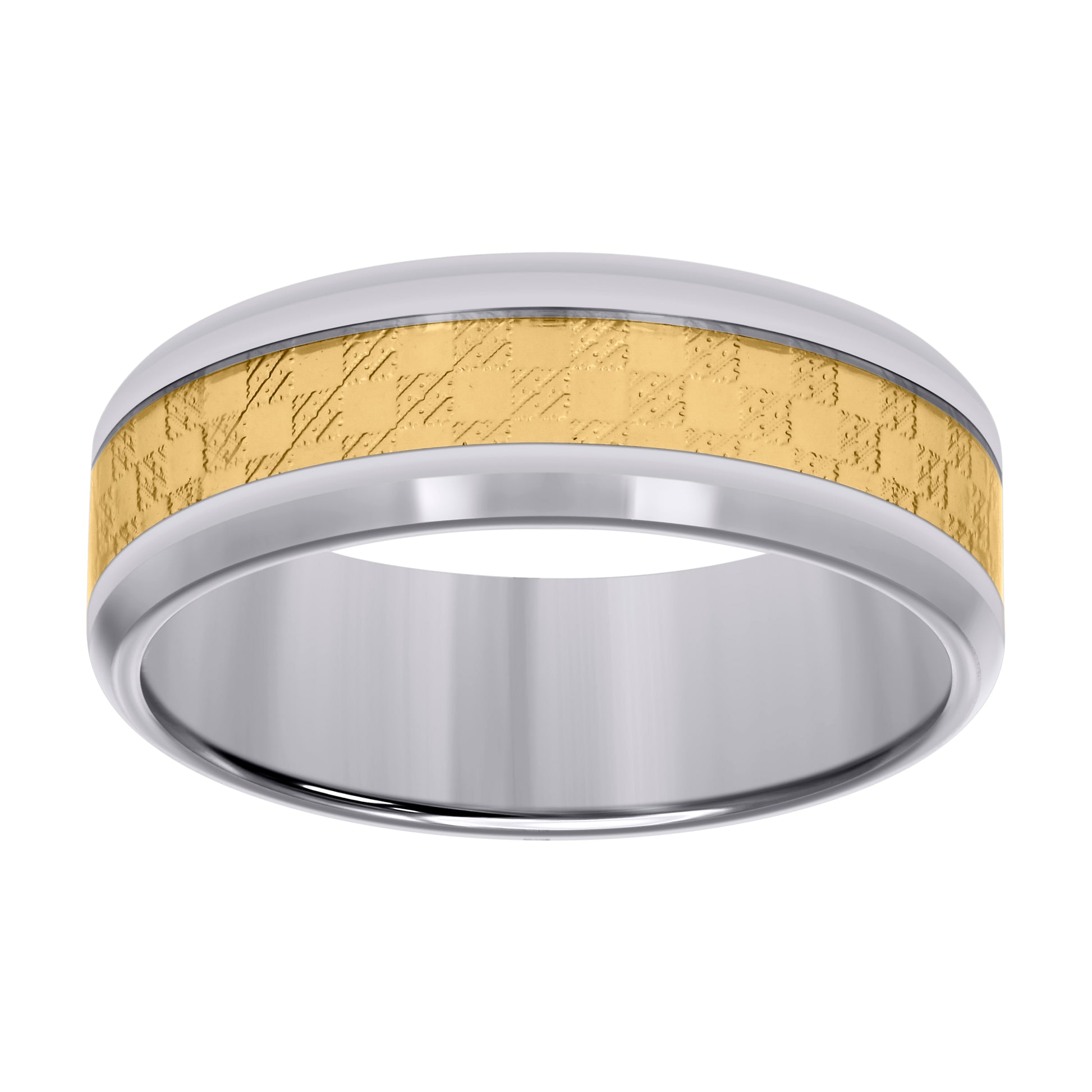Stainless Steel Yellow-tone Mens Inlay Comfort-Fit Wedding Band 8mm Size 9