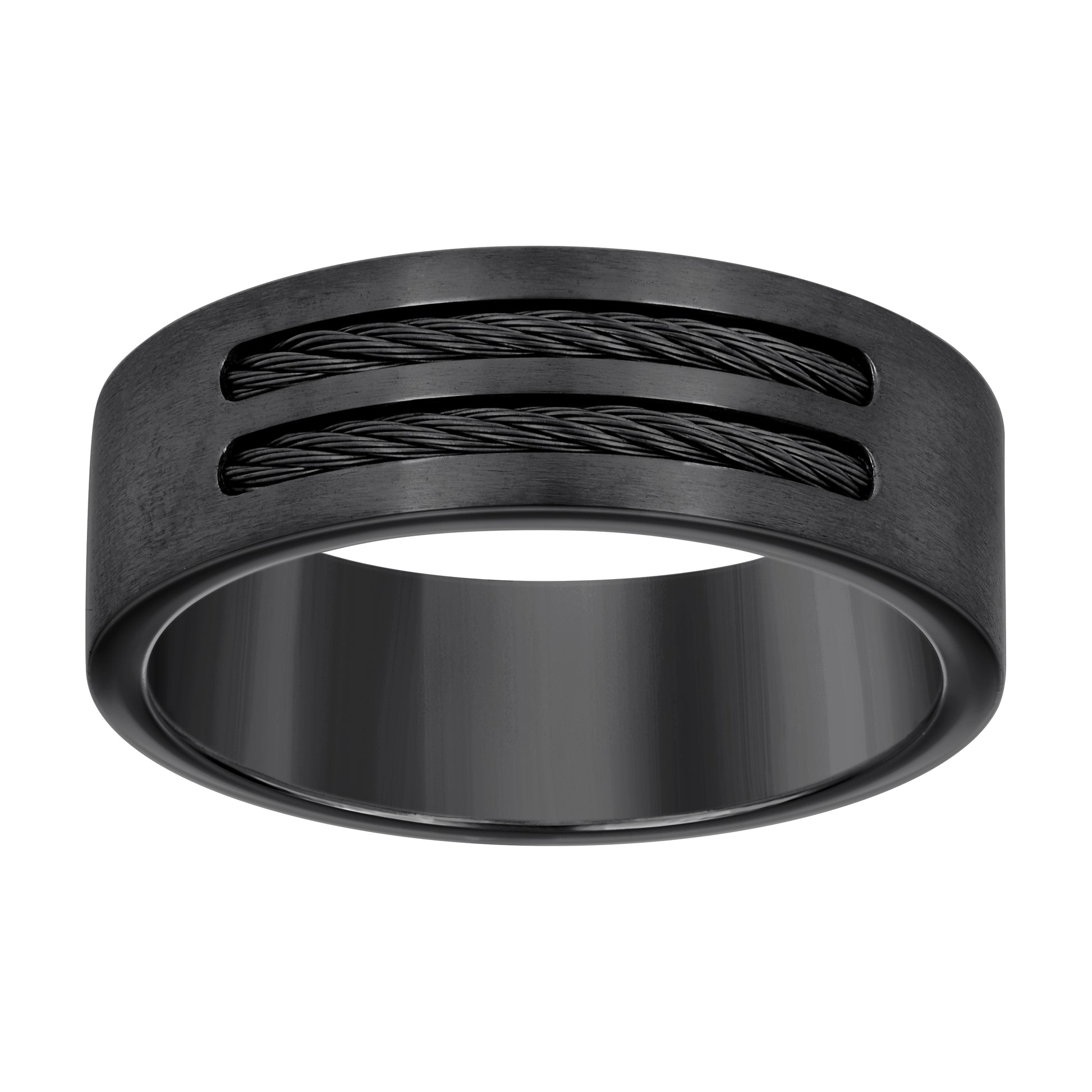 Stainless Steel Black-tone Mens Cable Inlay Comfort-Fit Wedding Band 8mm Size 9
