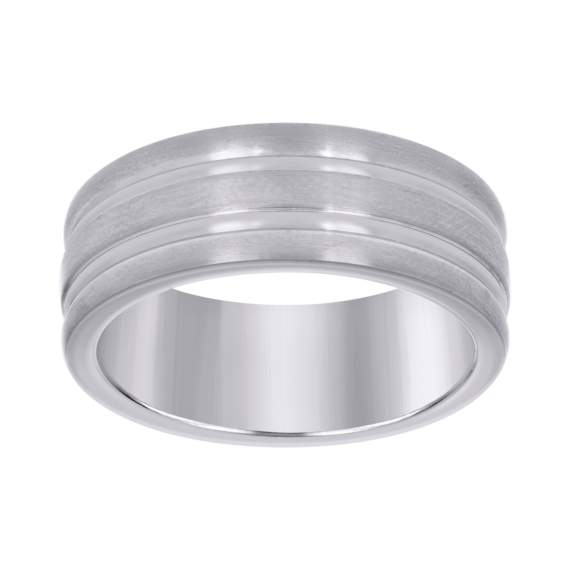 Stainless Steel Mens Two-Tone Double Grooved Center Brushed Size-7 Comfort-Fit Fashion Band Ring