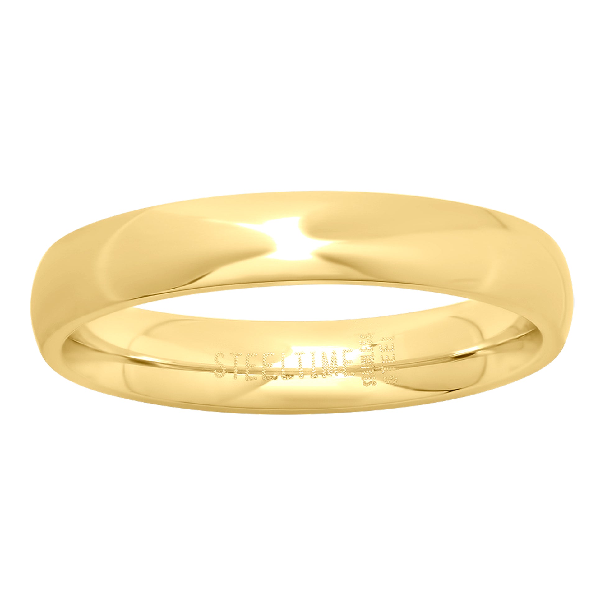 Stainless Steel Unisex Yellow-tone Dome Plain Wedding Anniversary 4mm Size-6 Comfort-fit Band Ring