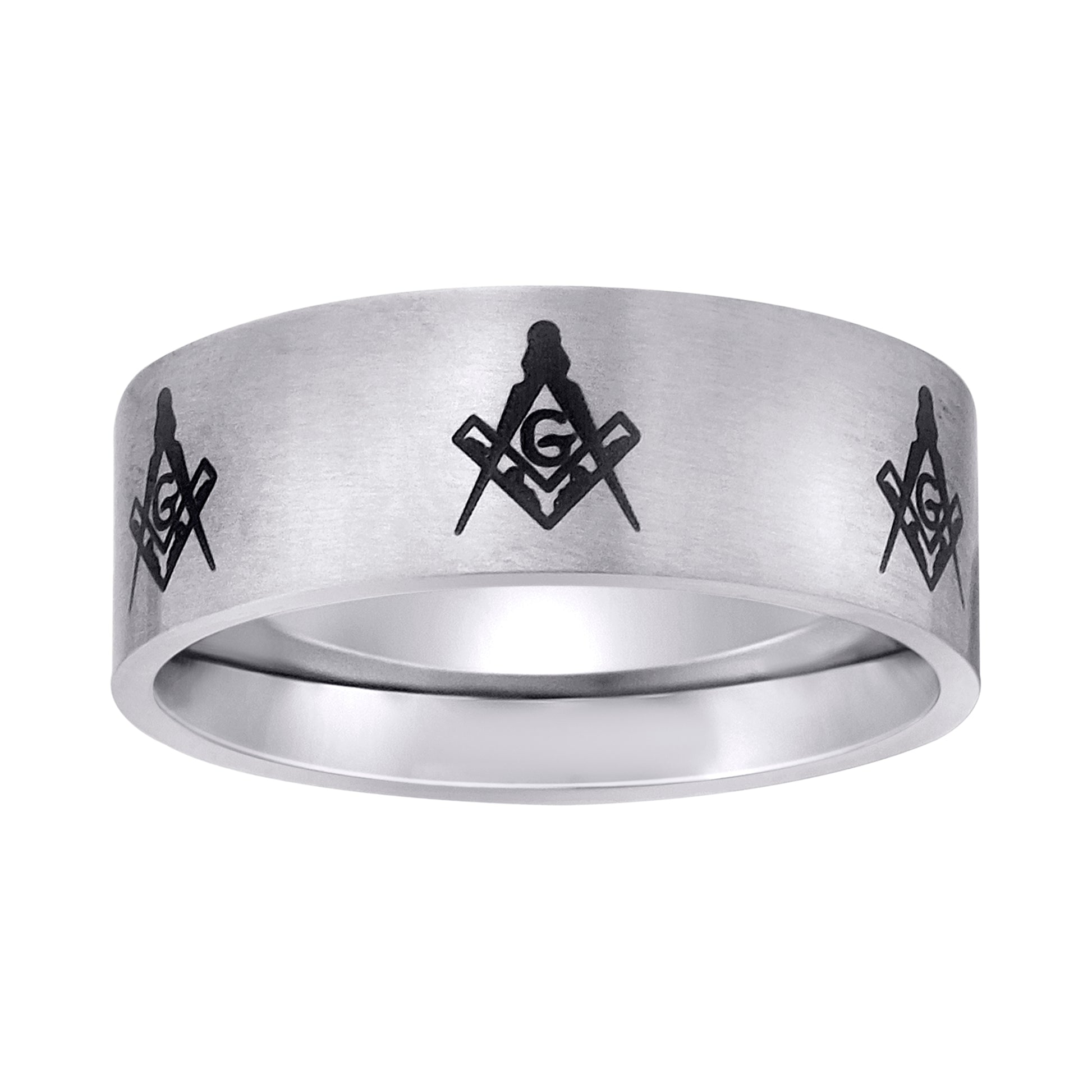 Stainless Steel Mens Masonic Laser Pattern Size 7 Comfort-Fit Wedding Band Ring