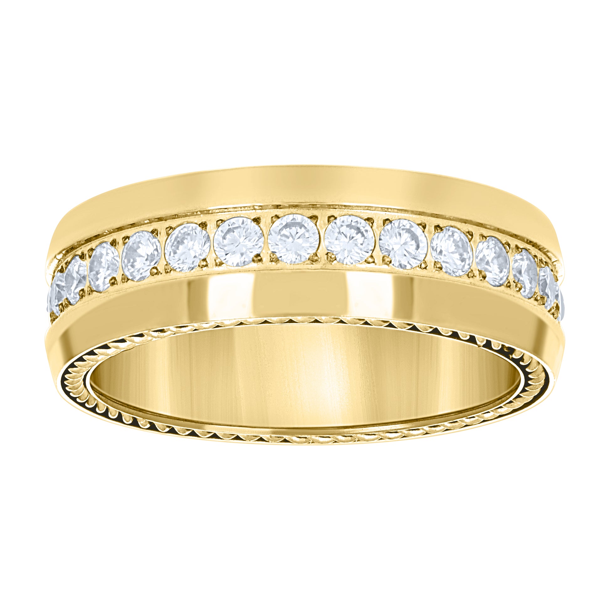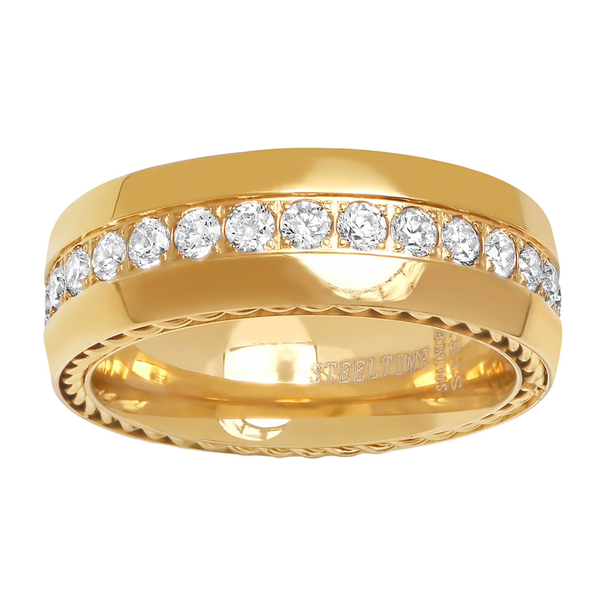 Yellow Stainless Steel Mens Cubic Zirconia Size-9 Comfort-fit Fashion Band Ring