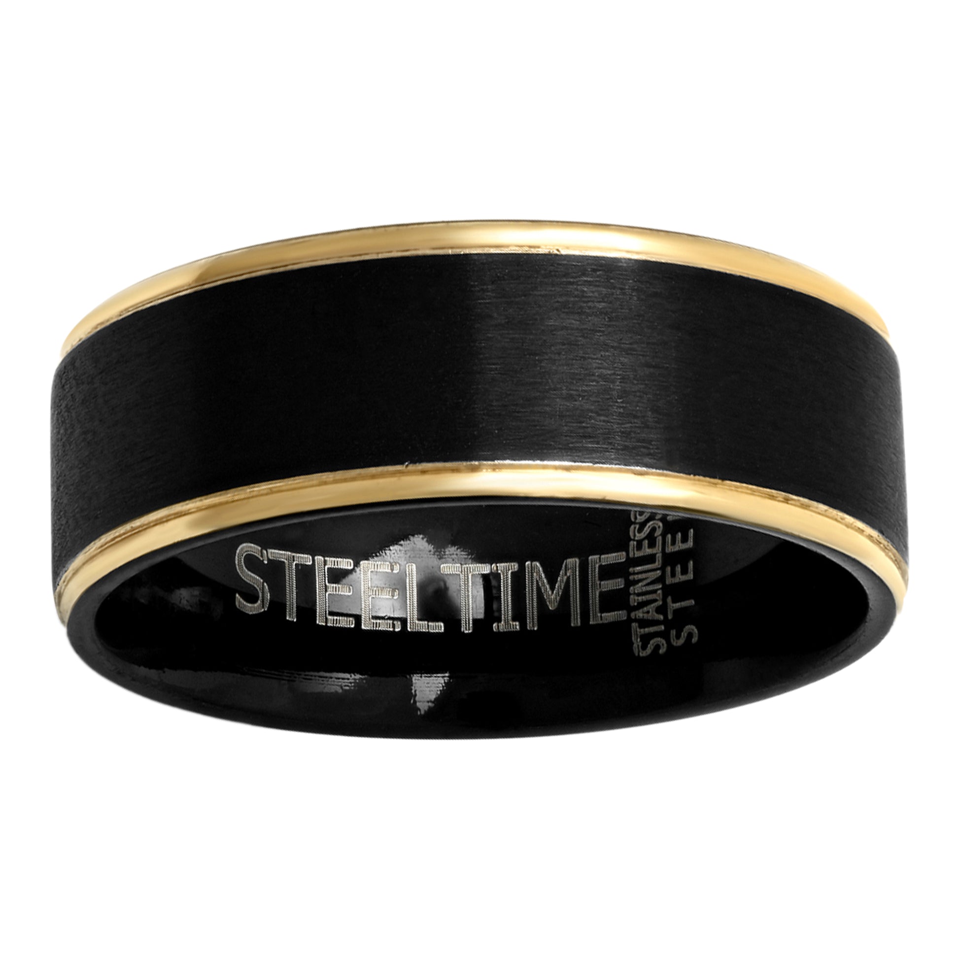 Stainless Steel Black Yellow-tone Mens Center Brushed Size-9 Comfort-fit Band Ring