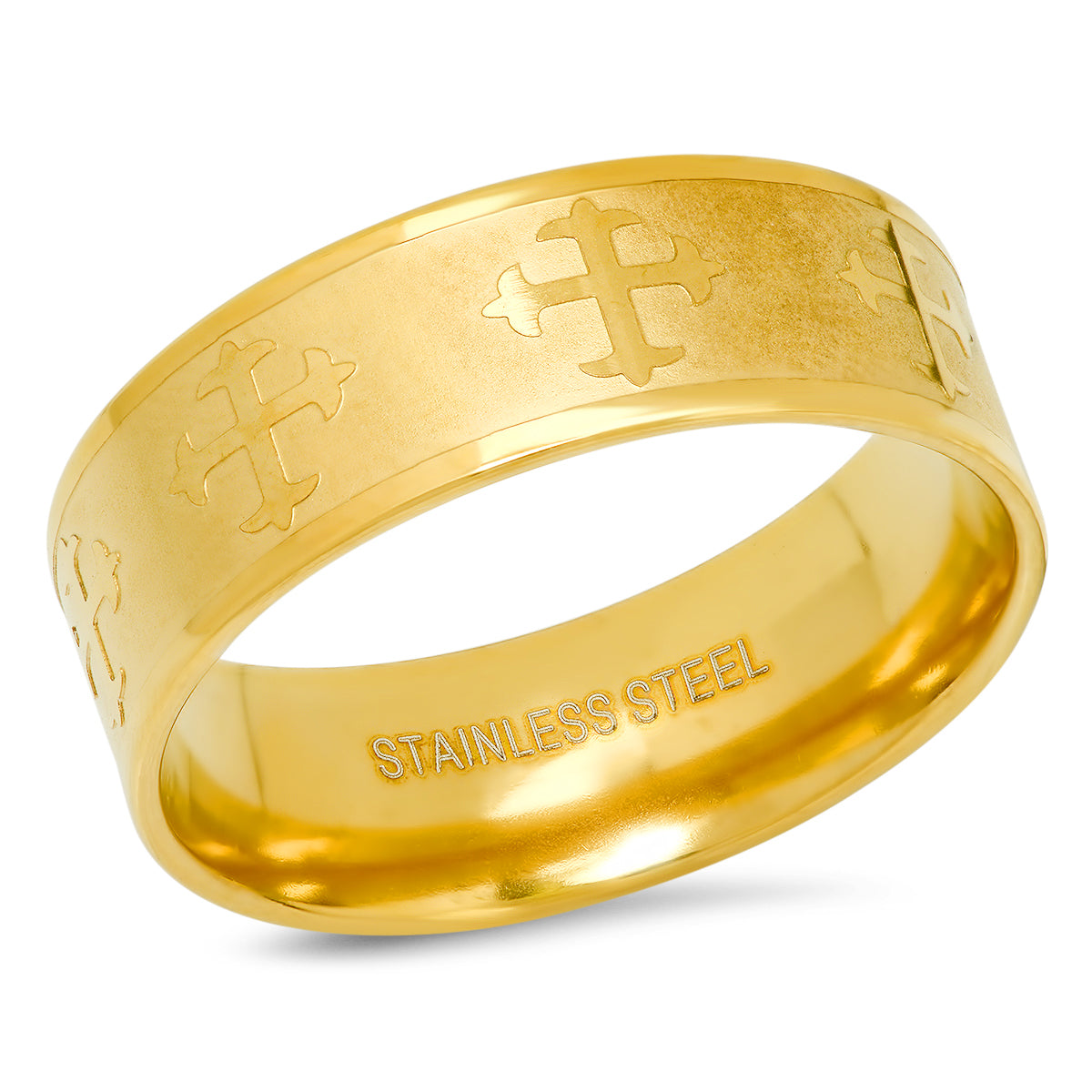 Stainless Steel Mens Yellow Cross Religious Ring Size 9